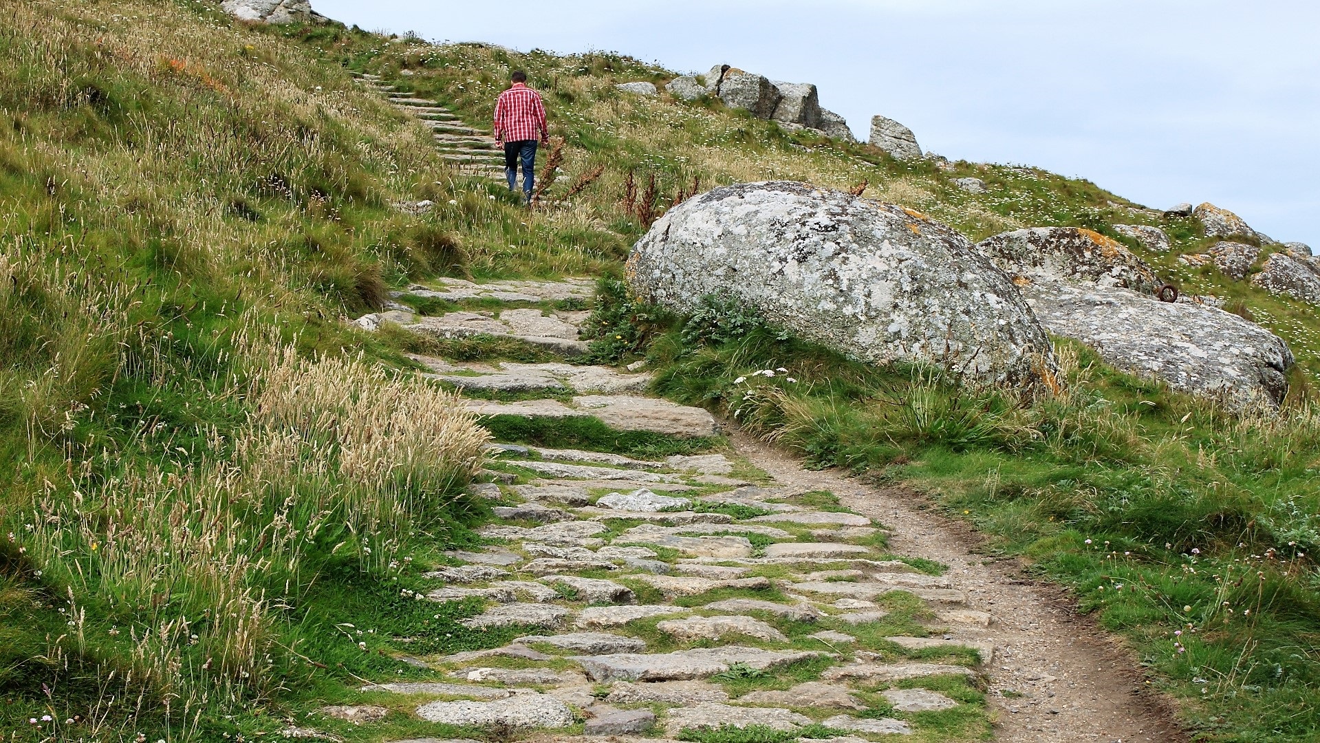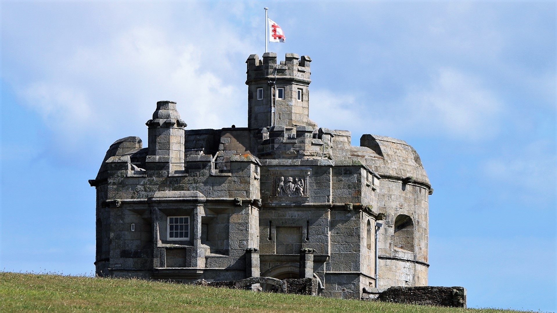 Von Sennen Cave nach Land's End am Coastal Path spazieren gegangen. Land's End gesehen. Weiterfahrt nach Chysanster Ancient Village. Eisenzeitliches Dorf besichtigt. Und weiter nach Pendennis Castle in Falmouth. Spezielle Herausforderung: Ausparken in Sennen Cave unter Applaus. Abends am Parkplatz nähe Castle.