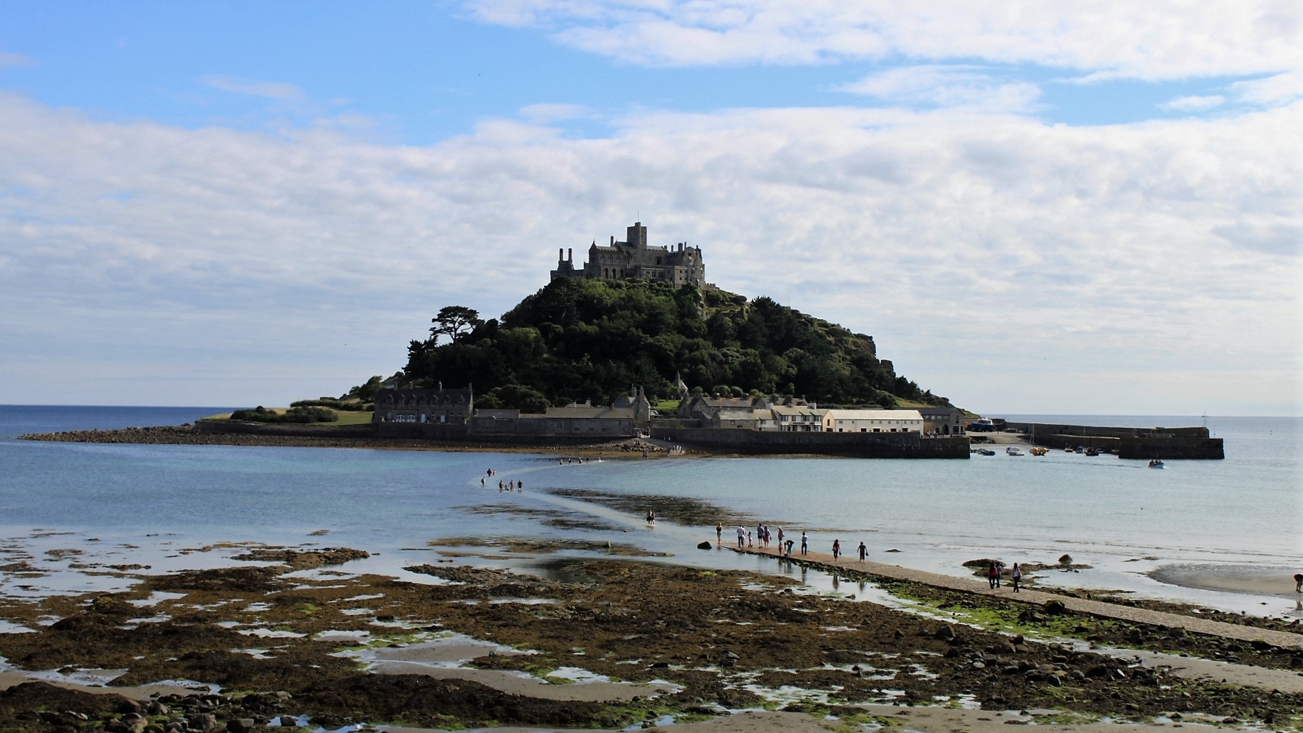 Nach Supermarktbesuch Versuch Tate in St. Ives zu besichtigen. Alles übervoll. Weiterfahrt zum St. Michael's Mount. Nett am Strand gechillt. Zu Fuß zur Insel gewatet.