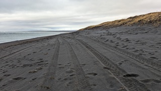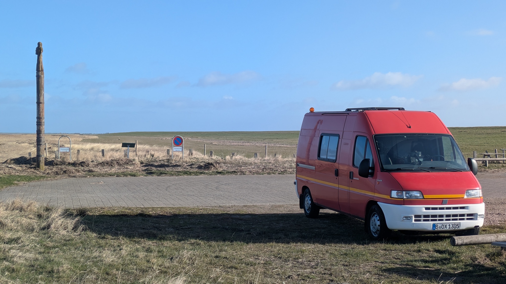 Heute strahlte die Sonne den ganzen lieben Tag, auch wenn es noch ganz schön kalt ist. Richtung Norden, noch an einer V&E-Station vorbei zum dritten Autostrand, diesmal ging es fast 20 Kilometer am Strand entlang, cool. Passiert ist heute aber nicht so viel.