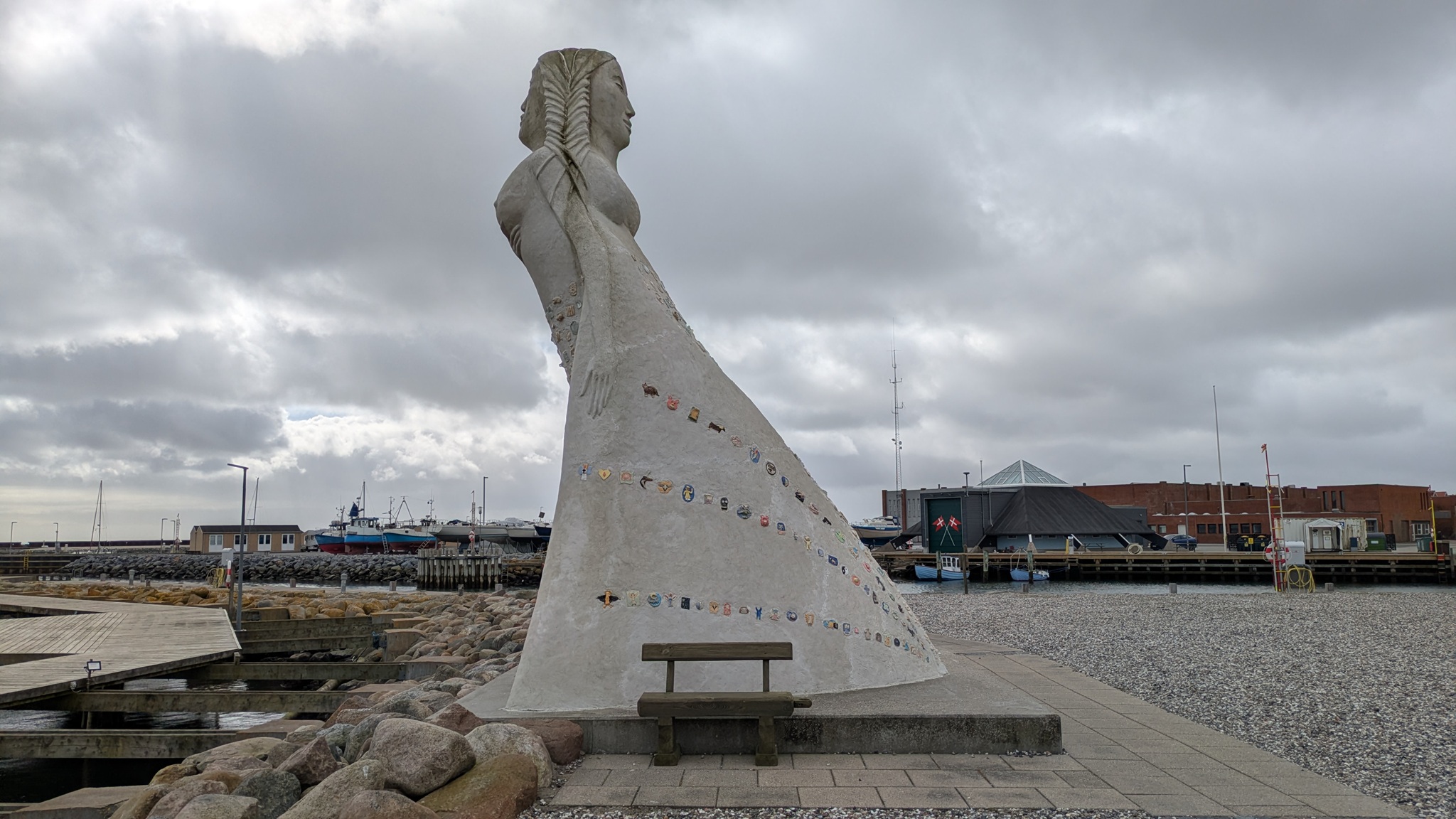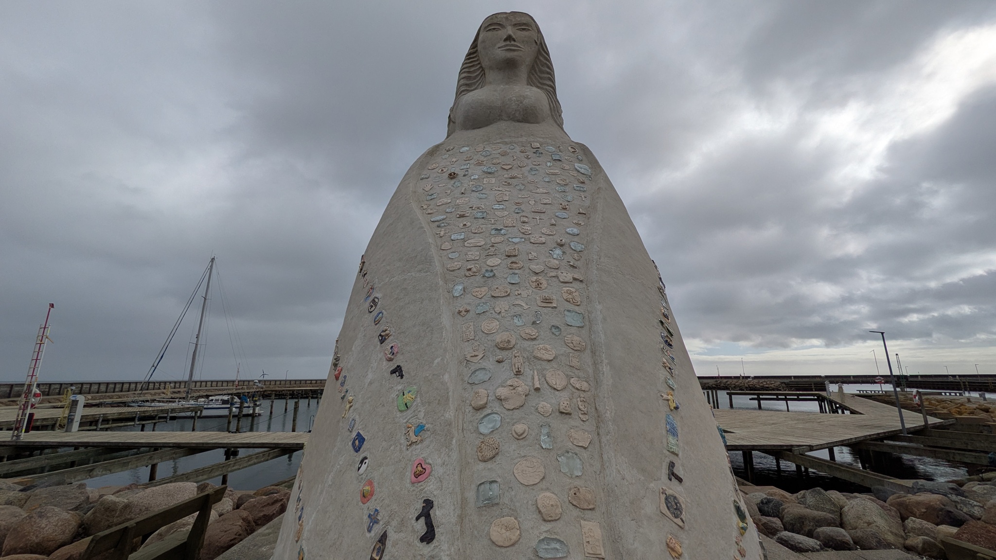 An diesem Bonus-Tag in Dänemark fuhr ich mal an die Ostseeseite Jütlands nach Sæby. Ein nettes kleines Städtchen mit Parkplatz bei SuperBrugsen. Hier konnte ich noch ein paar Einkäufe machen und bin dann zum Hafen. Zu sehen gibt es die Fruen fra Havet. Eine Frau, janusköpfig mit zwei Gesichtern, quasi Jana. Eingelassen sind unzählige Miniaturen von Kindern aus dem Ort, nettes Kunstwerk. Dann kam ein ordentlicher Schauer herunter und so blieb der Besuch recht kurz. Nächste Station: Skagen. Beim letzten Besuch 2021 dranvorbei zum nördlichsten Punkt Jütlands, habe ich mich diesmal dem Ort zugewandt. Meist blassgelb getünchte Häuser, ein schönes Stadtensemble, die Sonne schien auch. Mütze gäbe es, bei über 40 € dann doch nicht.