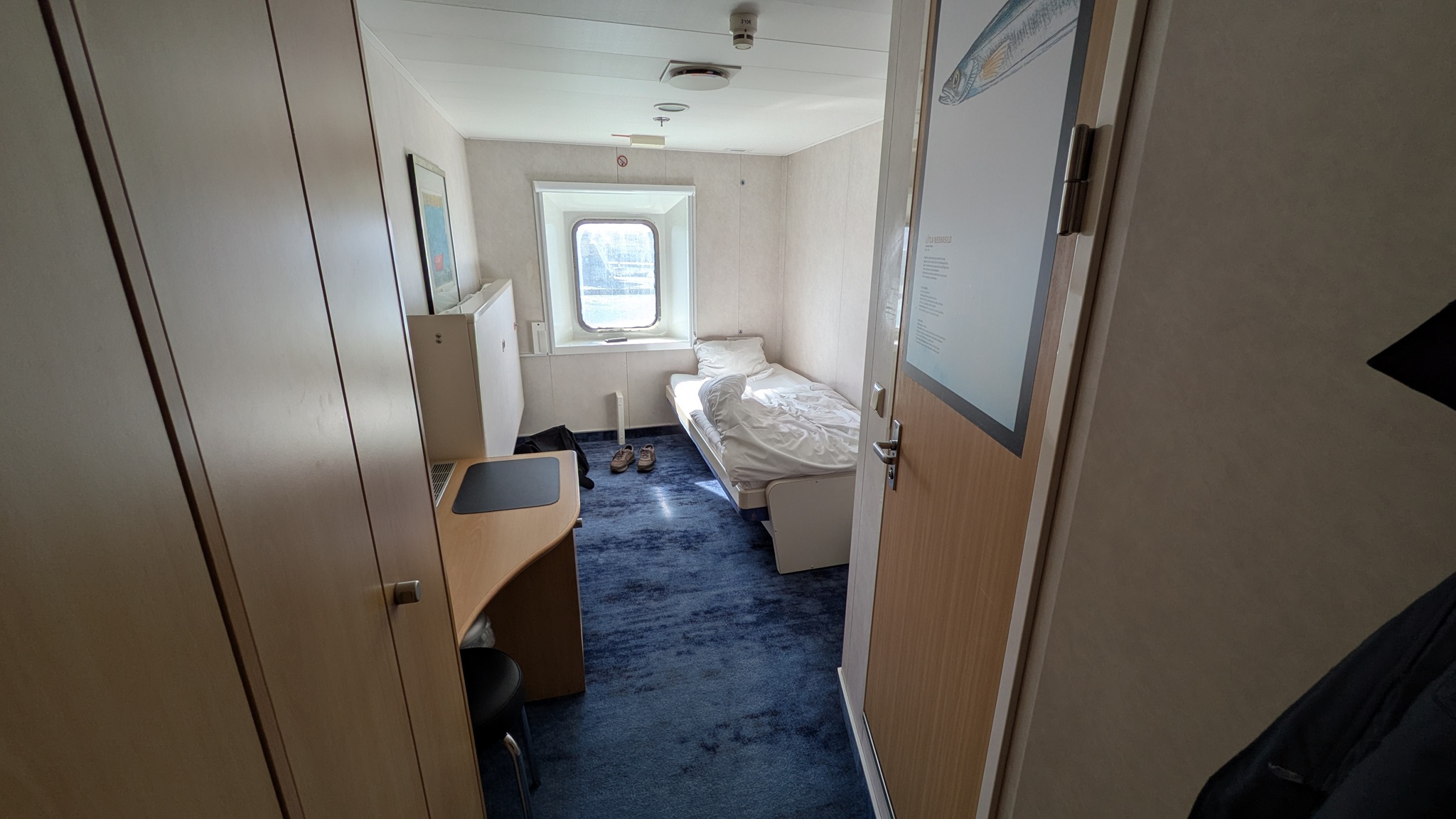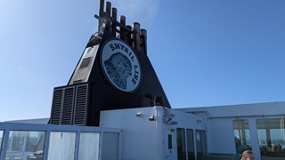 Check-in 11:00, Abfahrt dann um 14 Uhr mit der M/S Norröna. Der Seegang war ganz ordentlich, aber ohne Magengrummeln. Vielleicht helfen die Reisetabletten ja tatsächlich. In der Kabine gibt es TV, auch mit Live-Kamera von der Brücke, abends dann ein Fußball-Länderspiel im Fernsehen.