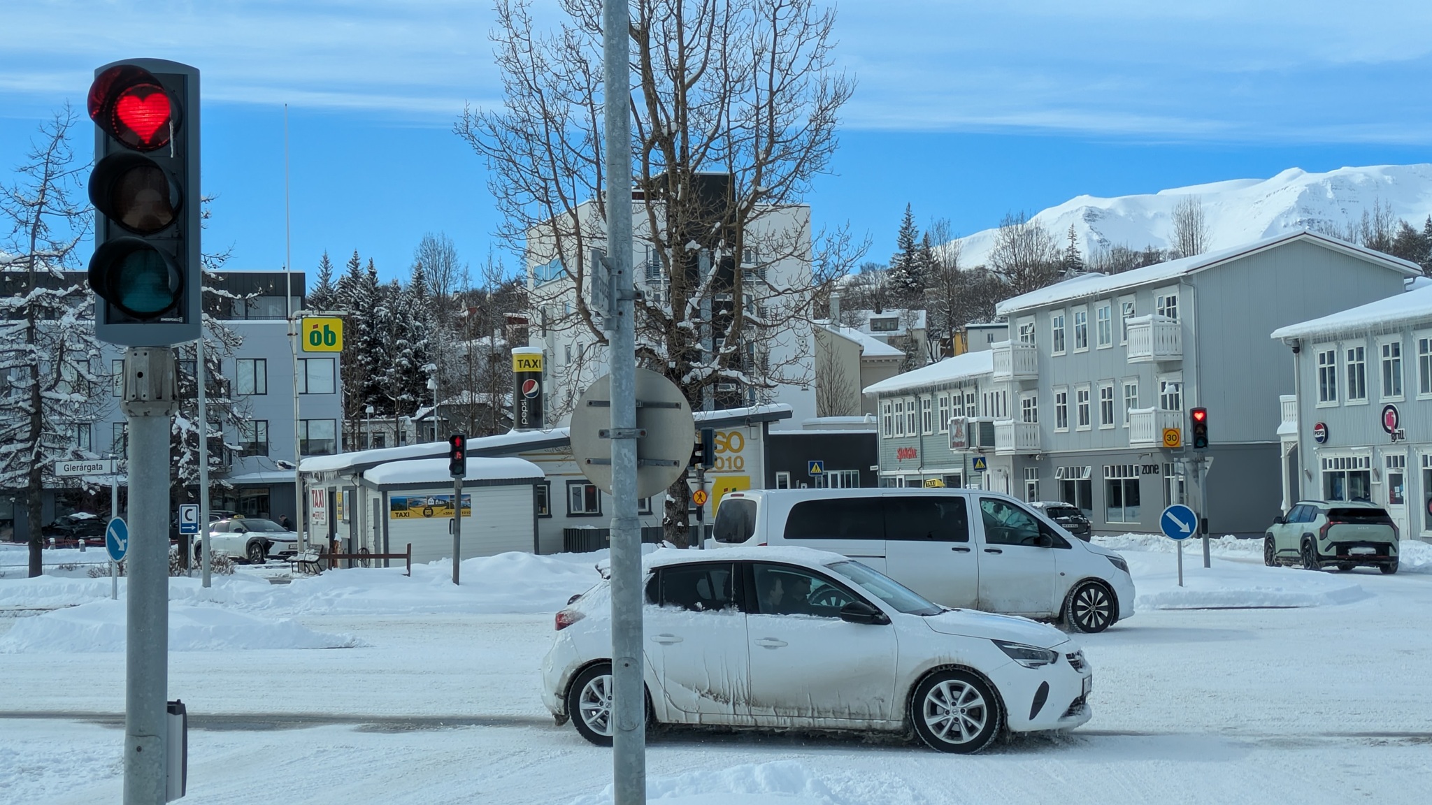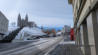 Akureyri ist hier das Versorgungszentrum, nicht sehr spektakulär, aber recht nett. Ein paar Einkäufe und Volltanken, dann ging es vor die Stadt auf den Campingplatz, heute mit Strom. Die Batterie wird während der kurzen Fahrten hier nicht ausreichend gefüllt, und auf dem Solarpanel liegt Schnee, an den ich nicht rankomme. Das Aufstellpanel lohnt auch nicht recht. Aus dem neuen Elektrokochtopf gab es dann eine leckere Bolognesesoße.
