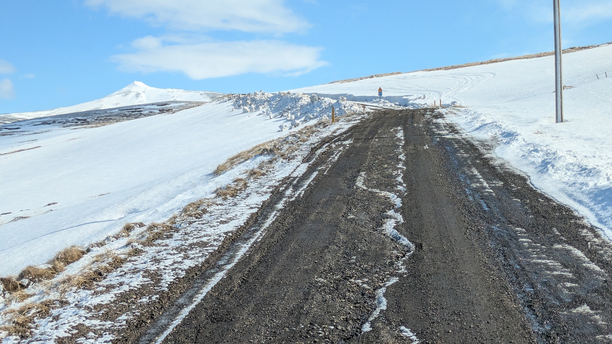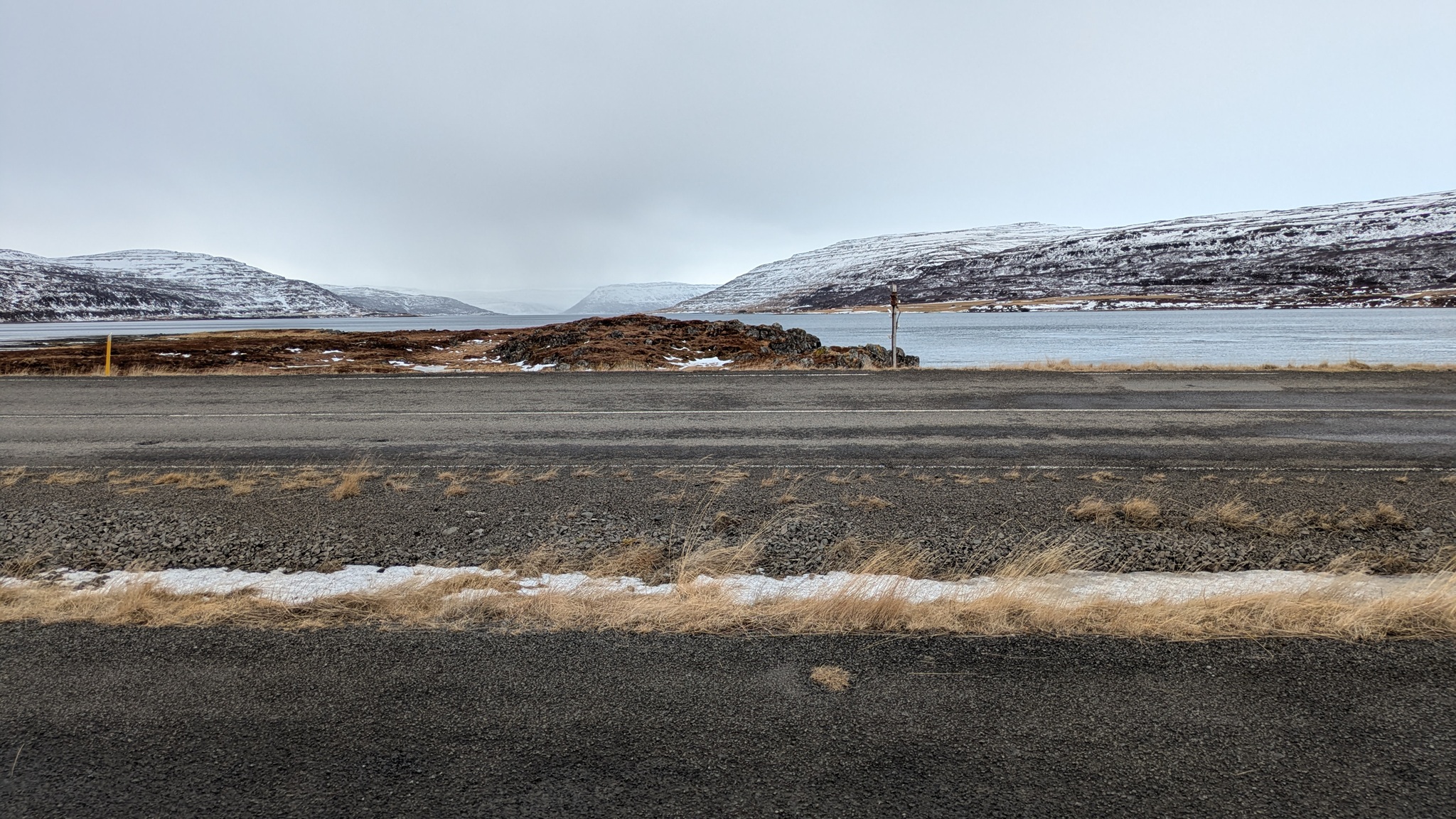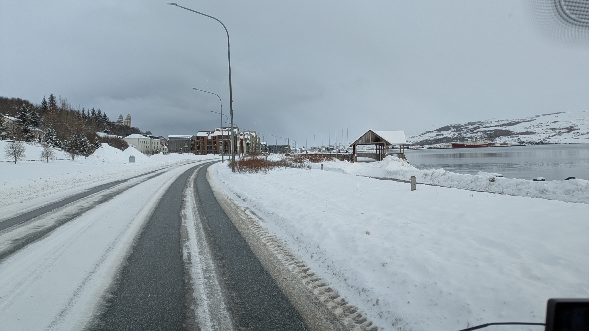 Auf der Weiterfahrt nach Akureyri musste ich mich entscheiden: Mauttunnel oder Passstrecke, da letztere nicht gesperrt war, also über den Pass, gut befahrbar mit schönen Ausblicken auf den Fjord.