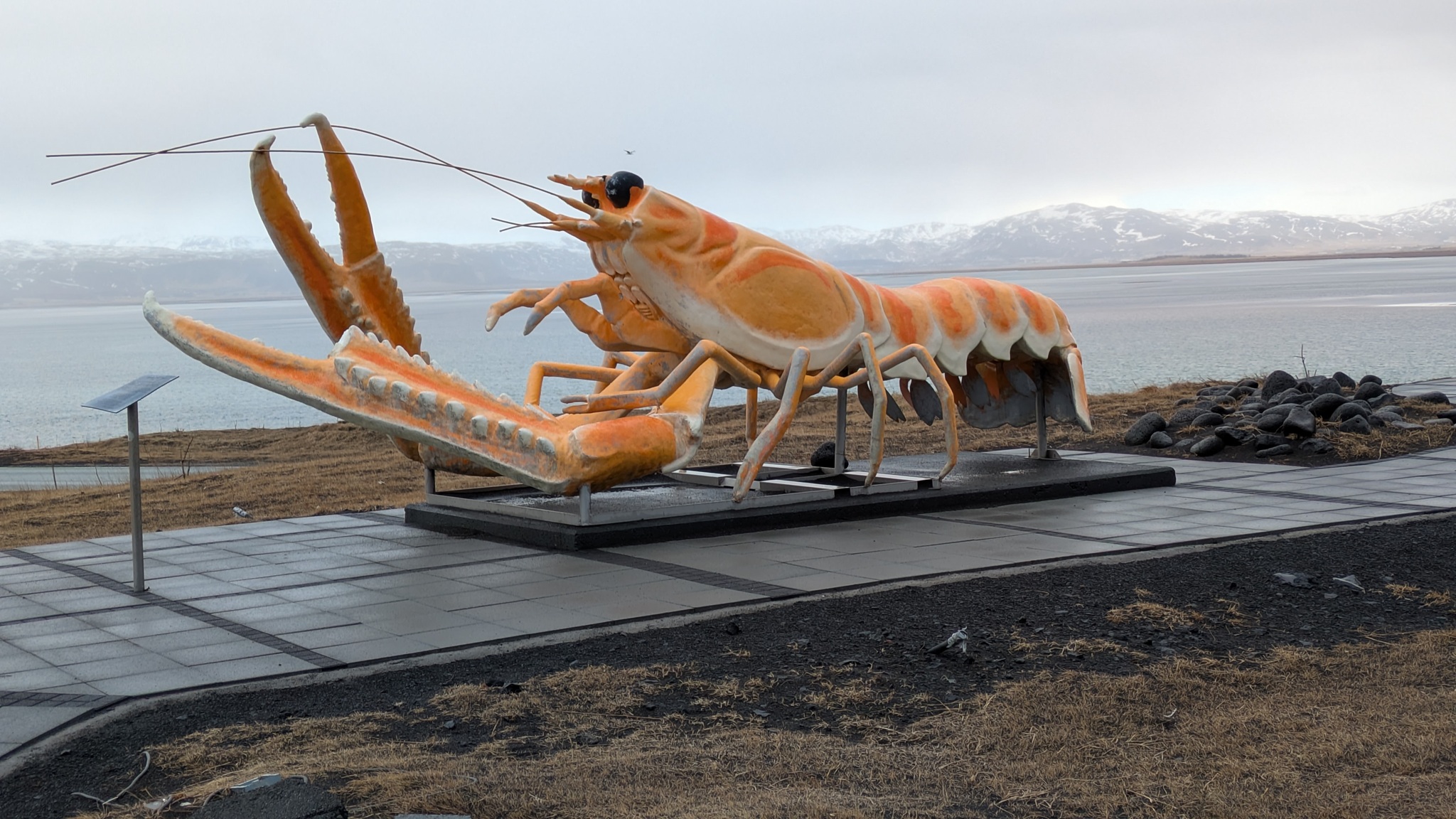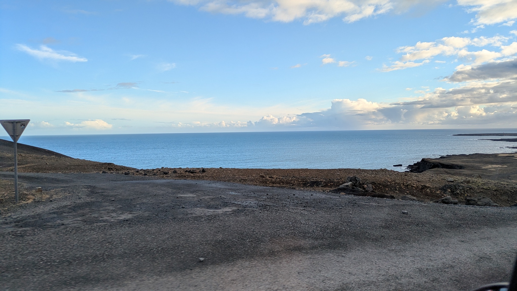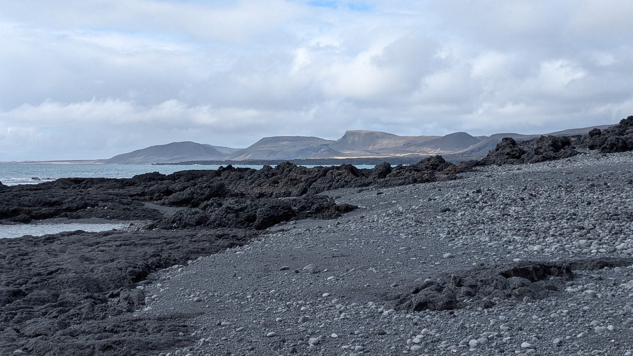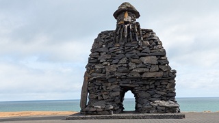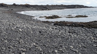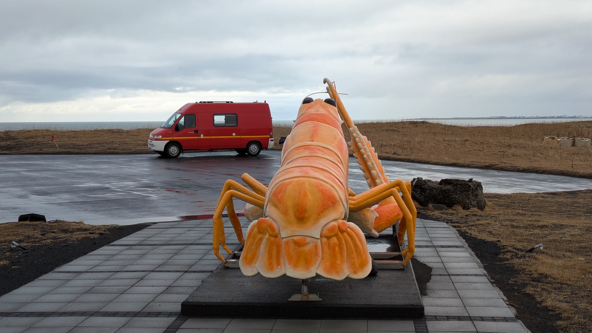 Ein paar hundert Meter neben dem Campingplatz raucht es seit einem Erdbeben 2008 aus der Erde und riecht stark nach Schwefel, da habe ich noch einen kurzen Stopp eingelegt. Das Tagesprogramm für heute: Südküste der Halbinsel Reykjanes. Am Parkplatz zum wunderschönen schwarzen Strand wurde ich vom "Lobster by the Sea" - Kunst - begrüßt, ein paar Holztreppenstufen hinunter dann der Meerzugang. Weiter westlich bis zur Strandakirkja. Viele Kirchen stehen auffällig weit von den Ortschaften entfernt, so auch diese. Die Fahrt ging weiter durch grün-schwarze Lavafelder, es sieht irre aus. Ein Abstecher ins Landesinnere ging bis zum Hochtemperaturgebiet Seltún. Ein kleiner See, erst 1999 nach einer Explosion entstanden, und viele heiße Dampfwolken durchziehen das bunte Steinareal. Noch ein Stück weiter ein schwarzer Strand am Lavasee und zurück an die Küstenstraße, am seit 2021 berühmten Vulkan Fagradalsfjall vorbei. Hier riss der Boden bis 2023 mehrmals auf und sorge dafür, dass Grindavík evakuiert wurde. Heute ist die Eruption vorbei, die Straße sind nagelneu und statt grün-schwarz dominiert hier schwarz. Dann bin ich spontan einem Sehenswürdigkeitenschild direkt bis zum Strand gefolgt. Die Piste nur 4x4-geeignet. Von der Sehenswürdigkeit - einer alten Fischersiedlung - ist zwar kaum noch etwas zu erahnen, dafür stand ich am schönsten aller Parkplätze bisher in einer Mondlandschaft. Nach einer langen Pause kamen einige Pickups mit Einheimischen, die von hier zu einer mehrstündigen Wanderung aufbrachen. Ein Viertelstündchen weiter liegt Grindavík, gleich am Ortseingang sah ich noch Reste einer aufgebrochenen Straße, der Campingplatz dann gleich daneben. Ein Franzose mit Sohn und ich suchten ein wenig nach dem Bezahlweg herum, und kamen ins Gespräch. Die Reise ist das Geburtstagsgeschenk für den 16-Jährigen, er liebt die Kälte des Nordens und wandert gern. Vaters Kommentar: "I'm dead from hiking." Er schenkte mir noch seinen übriggebliegenen Comté, denn morgen fliegen sie heim.