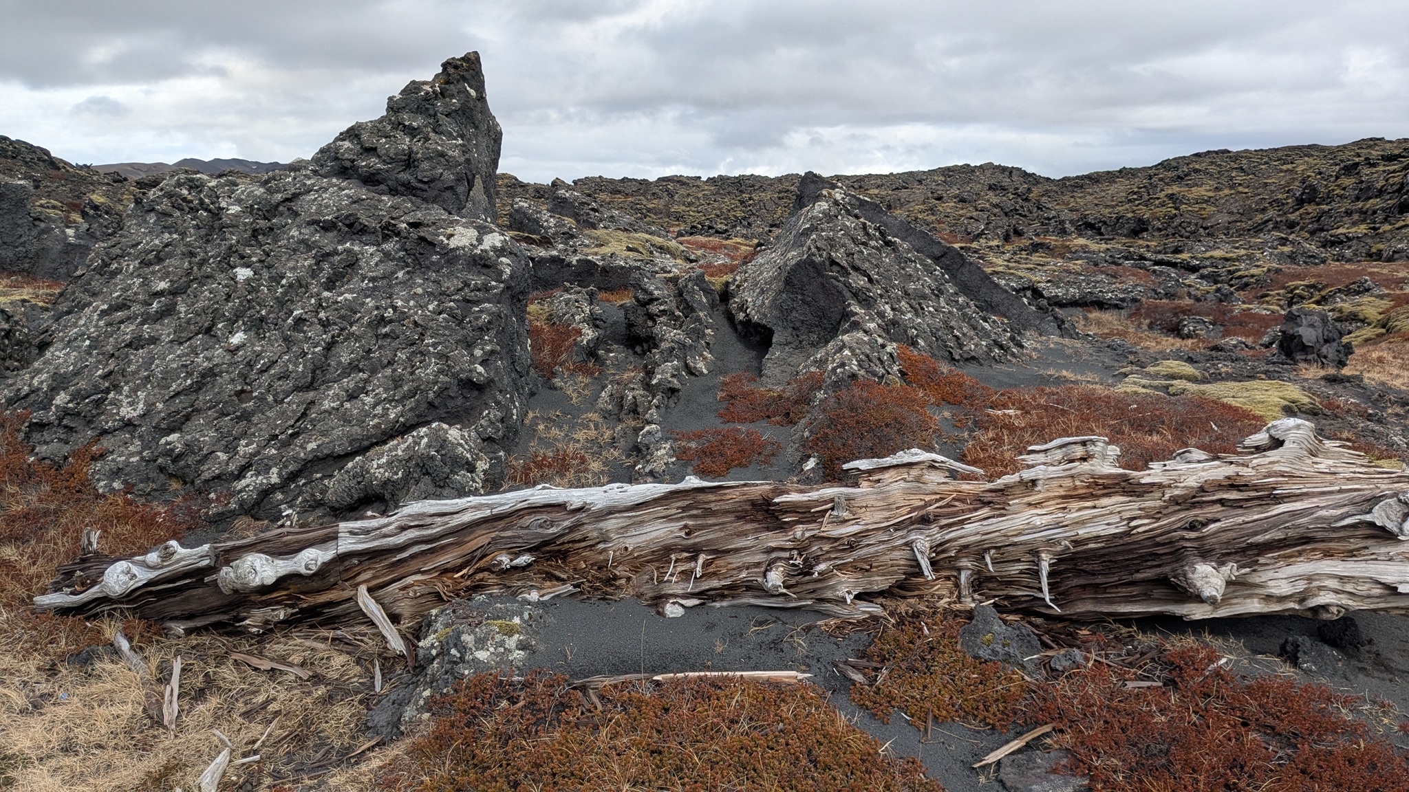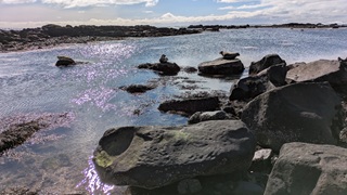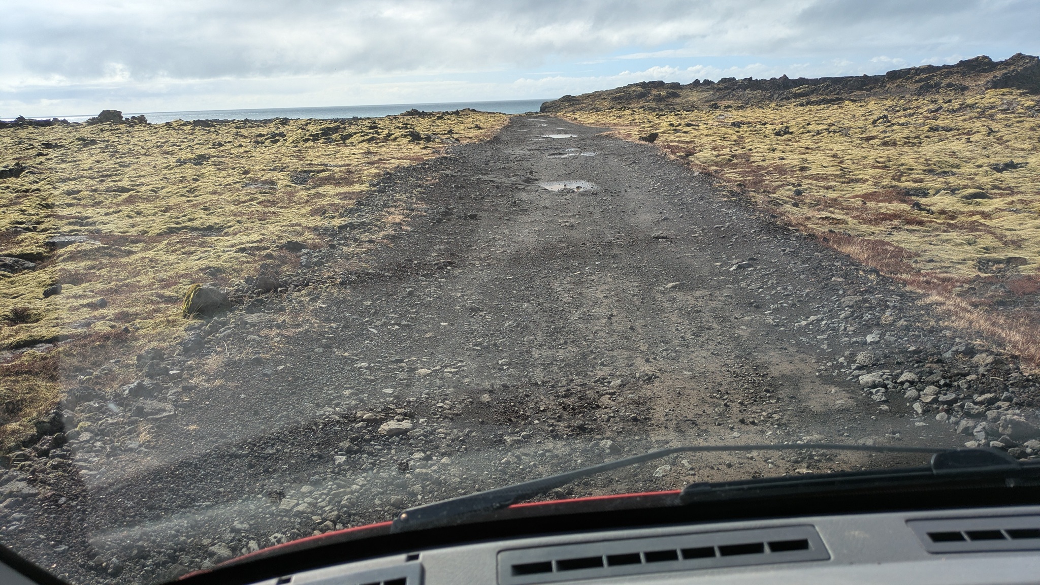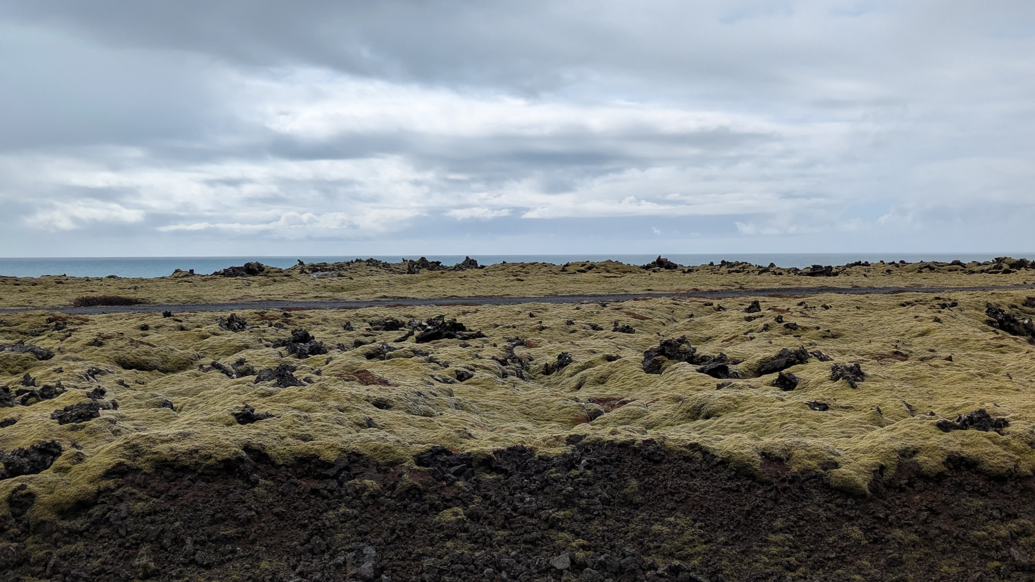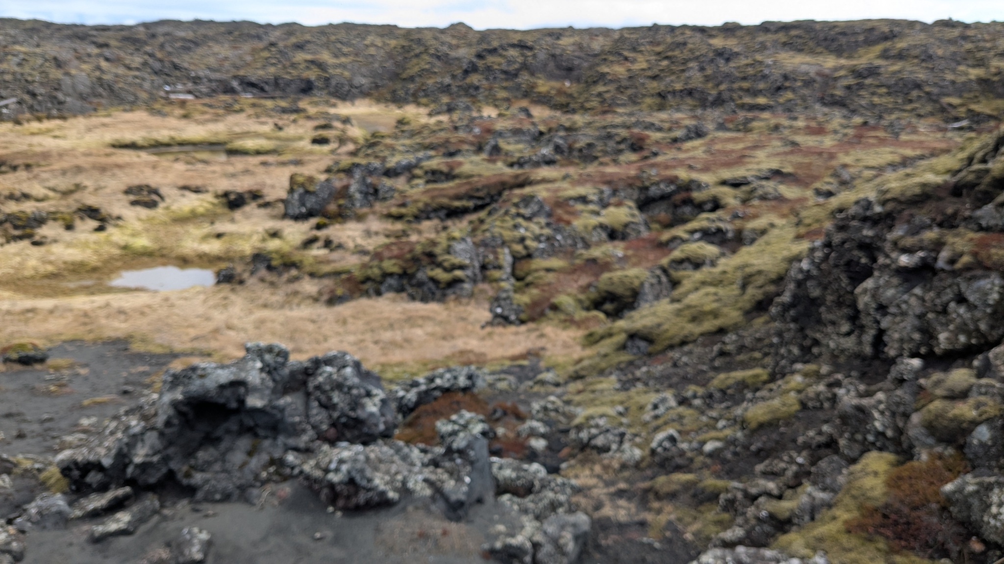 Ein paar hundert Meter neben dem Campingplatz raucht es seit einem Erdbeben 2008 aus der Erde und riecht stark nach Schwefel, da habe ich noch einen kurzen Stopp eingelegt. Das Tagesprogramm für heute: Südküste der Halbinsel Reykjanes. Am Parkplatz zum wunderschönen schwarzen Strand wurde ich vom "Lobster by the Sea" - Kunst - begrüßt, ein paar Holztreppenstufen hinunter dann der Meerzugang. Weiter westlich bis zur Strandakirkja. Viele Kirchen stehen auffällig weit von den Ortschaften entfernt, so auch diese. Die Fahrt ging weiter durch grün-schwarze Lavafelder, es sieht irre aus. Ein Abstecher ins Landesinnere ging bis zum Hochtemperaturgebiet Seltún. Ein kleiner See, erst 1999 nach einer Explosion entstanden, und viele heiße Dampfwolken durchziehen das bunte Steinareal. Noch ein Stück weiter ein schwarzer Strand am Lavasee und zurück an die Küstenstraße, am seit 2021 berühmten Vulkan Fagradalsfjall vorbei. Hier riss der Boden bis 2023 mehrmals auf und sorge dafür, dass Grindavík evakuiert wurde. Heute ist die Eruption vorbei, die Straße sind nagelneu und statt grün-schwarz dominiert hier schwarz. Dann bin ich spontan einem Sehenswürdigkeitenschild direkt bis zum Strand gefolgt. Die Piste nur 4x4-geeignet. Von der Sehenswürdigkeit - einer alten Fischersiedlung - ist zwar kaum noch etwas zu erahnen, dafür stand ich am schönsten aller Parkplätze bisher in einer Mondlandschaft. Nach einer langen Pause kamen einige Pickups mit Einheimischen, die von hier zu einer mehrstündigen Wanderung aufbrachen. Ein Viertelstündchen weiter liegt Grindavík, gleich am Ortseingang sah ich noch Reste einer aufgebrochenen Straße, der Campingplatz dann gleich daneben. Ein Franzose mit Sohn und ich suchten ein wenig nach dem Bezahlweg herum, und kamen ins Gespräch. Die Reise ist das Geburtstagsgeschenk für den 16-Jährigen, er liebt die Kälte des Nordens und wandert gern. Vaters Kommentar: "I'm dead from hiking." Er schenkte mir noch seinen übriggebliegenen Comté, denn morgen fliegen sie heim.