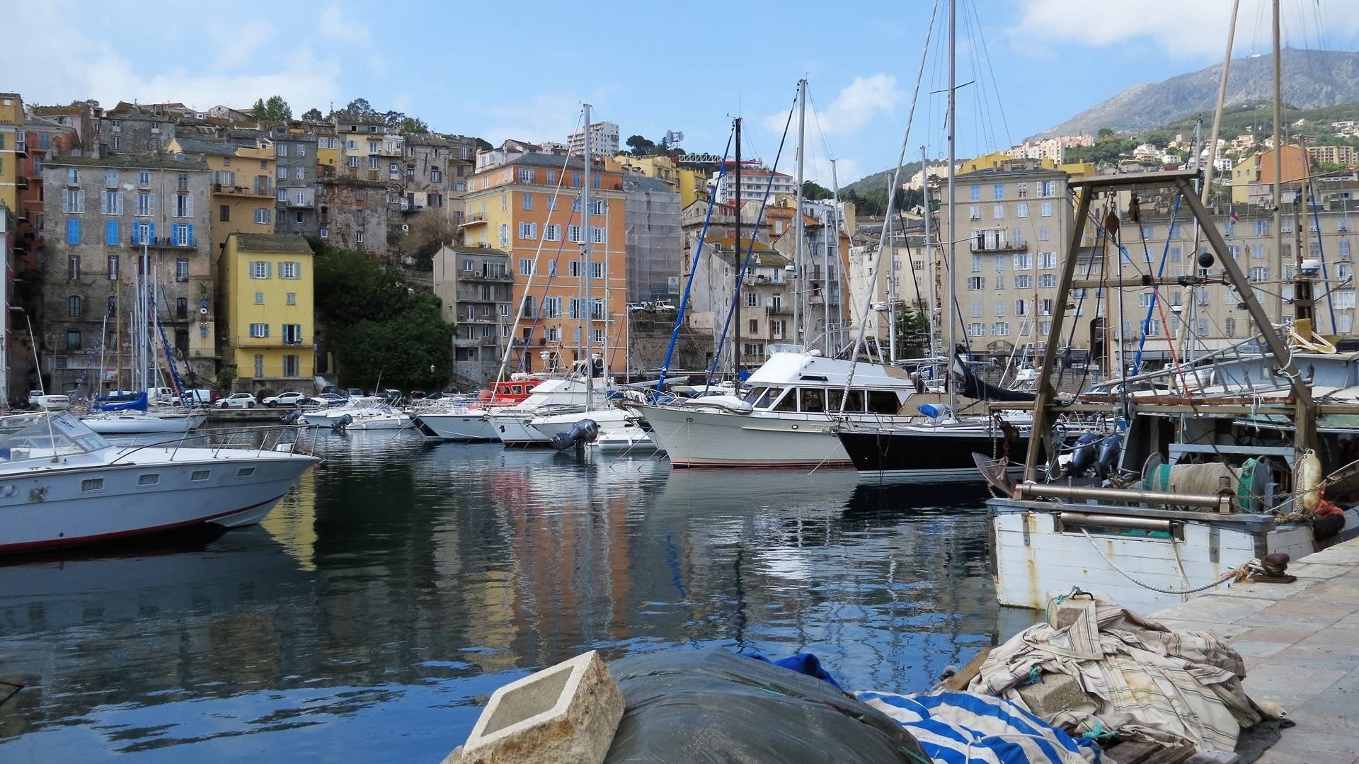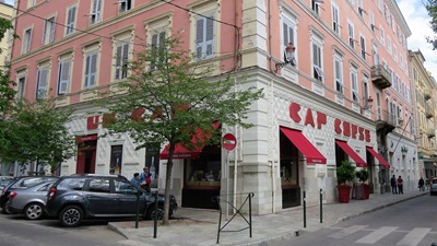 Stadtbummel in Bastia mit Einkauf im Stammhaus von Mattei (Aperitif und Gläser). Ruhige Schifffahrt bis Livorno, V&E am Hafen, durchgefahren bis in die Schweiz, Stellplatz zwischen Autobahn, Eisenbahn und rauschendem Wildbach, aber OK.
