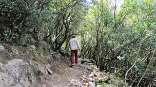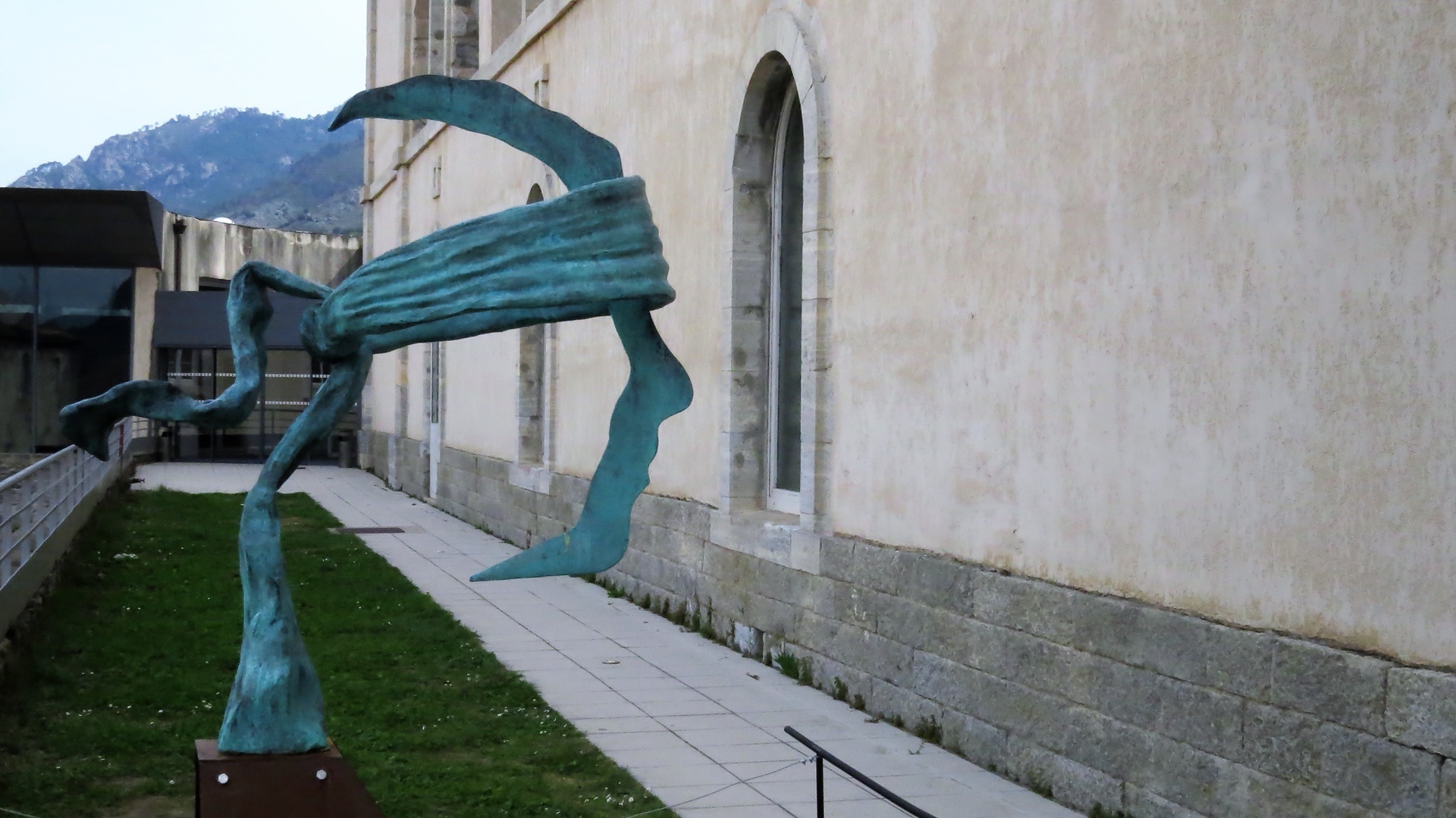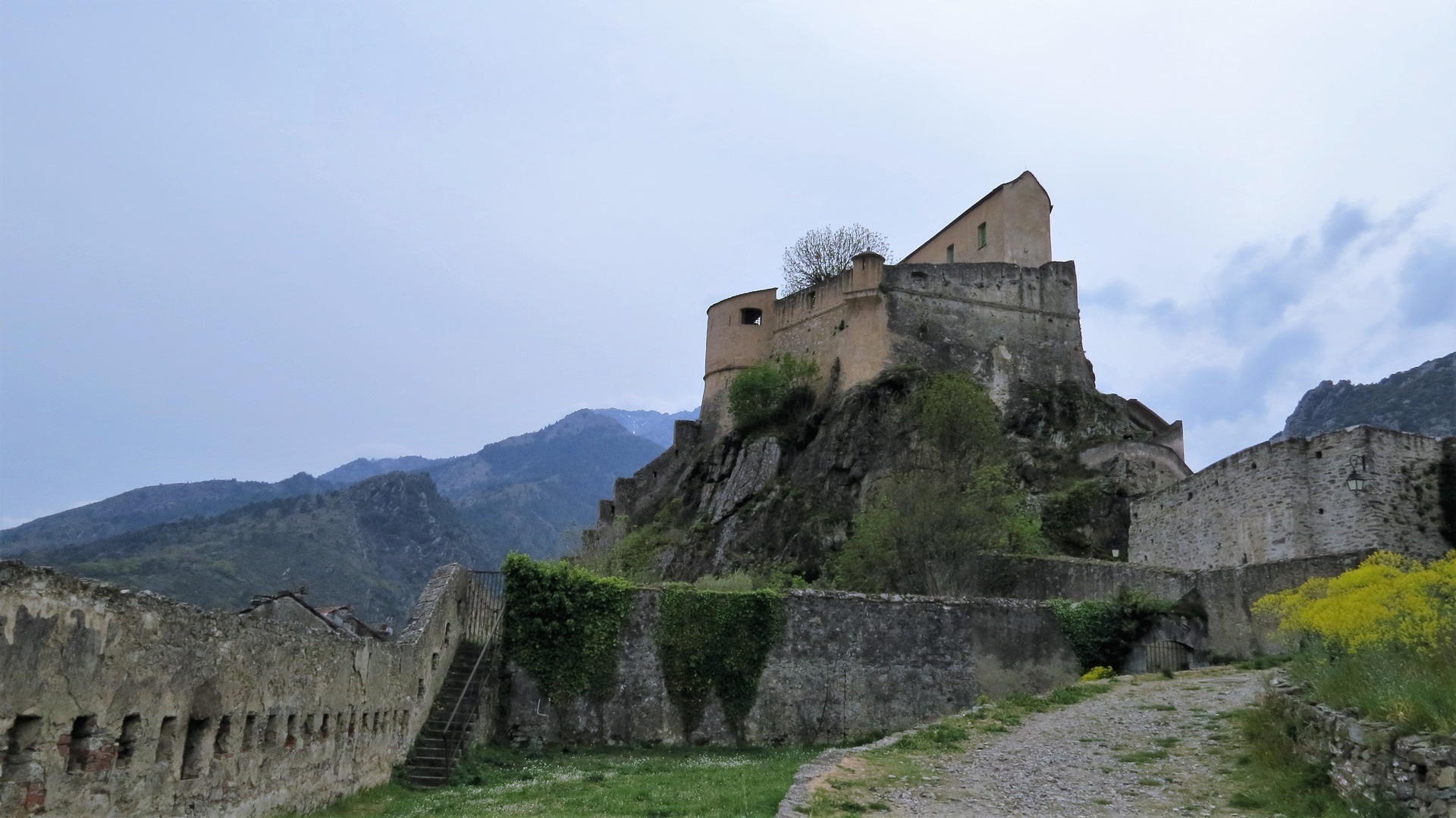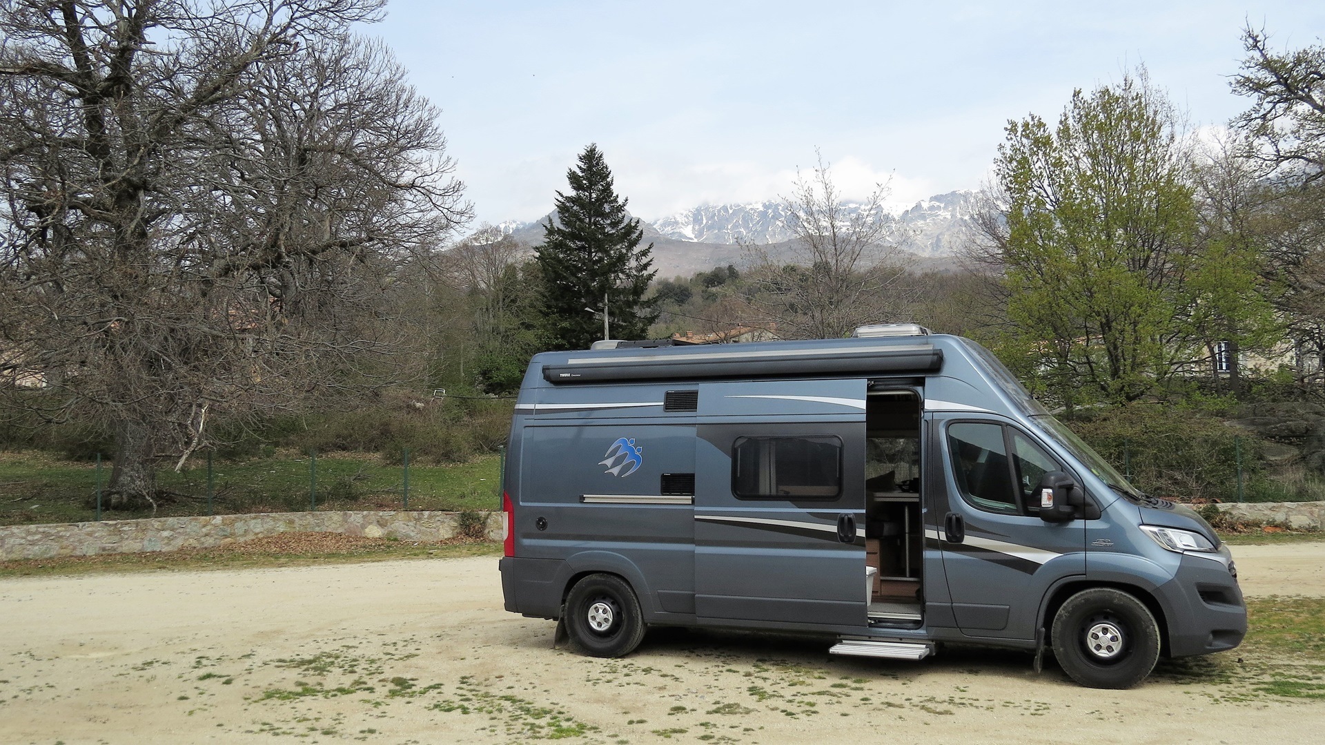 Als der Kletterwald-Parkplatz sich "füllte" (4 Autos) war es Zeit, zu gehen. Auf der Umwegstrecke zur Cascade du Voile de la Mariée lagen Schweine auf der Straße, wie im Womo-Reiseführer vorausgesagt. Der 10-Minuten-Fußweg steil bergan zur Brautschleier-Kaskade ist sehr lohnend, der höchste korsische Wasserfall entschädigt für die kleine Strapaze. Die Fahrt durchs Bergdorf Bocognano führte uns am "Stereobrunnen" für unseren Wasservorrat vorbei schließlich nach Corte. Kurzes Schläfchen und dann zur Zitadelle und ins Museu di a Corsica. Schöne Blicke auf Täler und Berge, engagierte Ausstellung korsischen Lebens in sehenswertem Gebäude. Abstecher nach Nordosten auf Schlafplatzsuche, aber alles sehr eng auf schmalsten Straßen, Rückbesinnung auf die Qualitäten des Womo-Reiseführers: Fahrt Richtung Porto bis an den Calacuccia-Stausee durch die Scala di Santa Regina. Spektakuläre Schlucht aus Steinen, nicht für jedes Womo tauglich! Am See dann Stellplatz 121 mit Blick auf die zum Teil schneebedeckten Zweitausender.