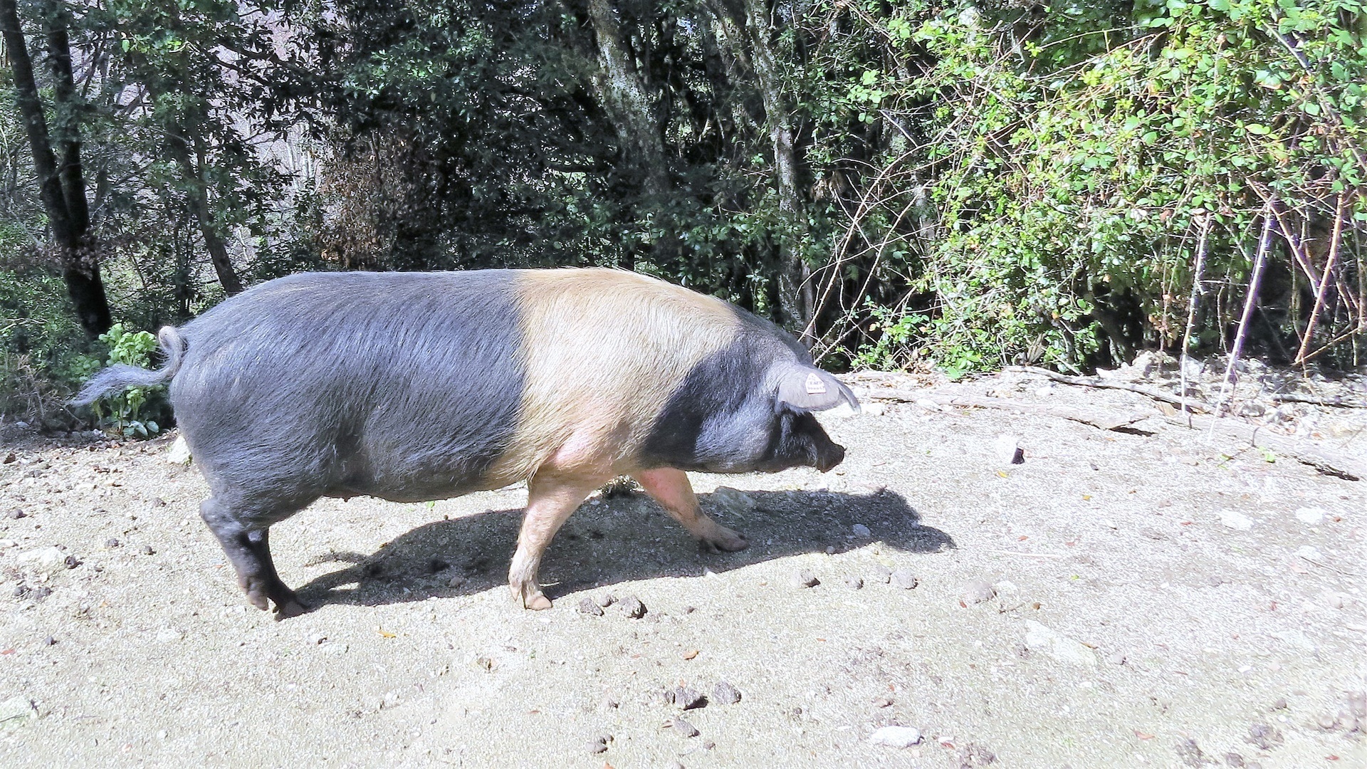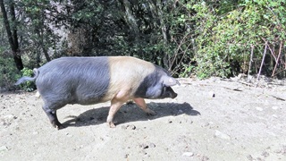 Weitere Kühe auf unserer Wiese beim Frühstück. Fahrt auf der D69 nach Süden durch die hohen Berge. Sehr abwechslungsreiche Vegetation und auch halbwilde Schweine, steinige Zinnen, Pass auf 1.278 m und Katarakt so schön ausgewaschen auf blankem Stein, dass er fast wie künstlich angelegt wirkte. Auf dem Weg mit frischem Brunnenwasser den Tank gefüllt. In Porto-Vecchio einen Altstadtbummel in der Zitadelle gemacht, der Platz der Republik eine große Baustelle, alles in allem keinen Umweg lohnend. Der Plage Palombaggia ist wie allenthalben vermerkt wirklich sehr schön: blau-türkises Wasser, rote Felsen, weißer Sand, grüne Pinien. Stell- und Campingplätze noch geschlossen, am Strand nebenan nette Strandbar (Aperol Spritz) und Stellplatz 069 mit Meerblick.