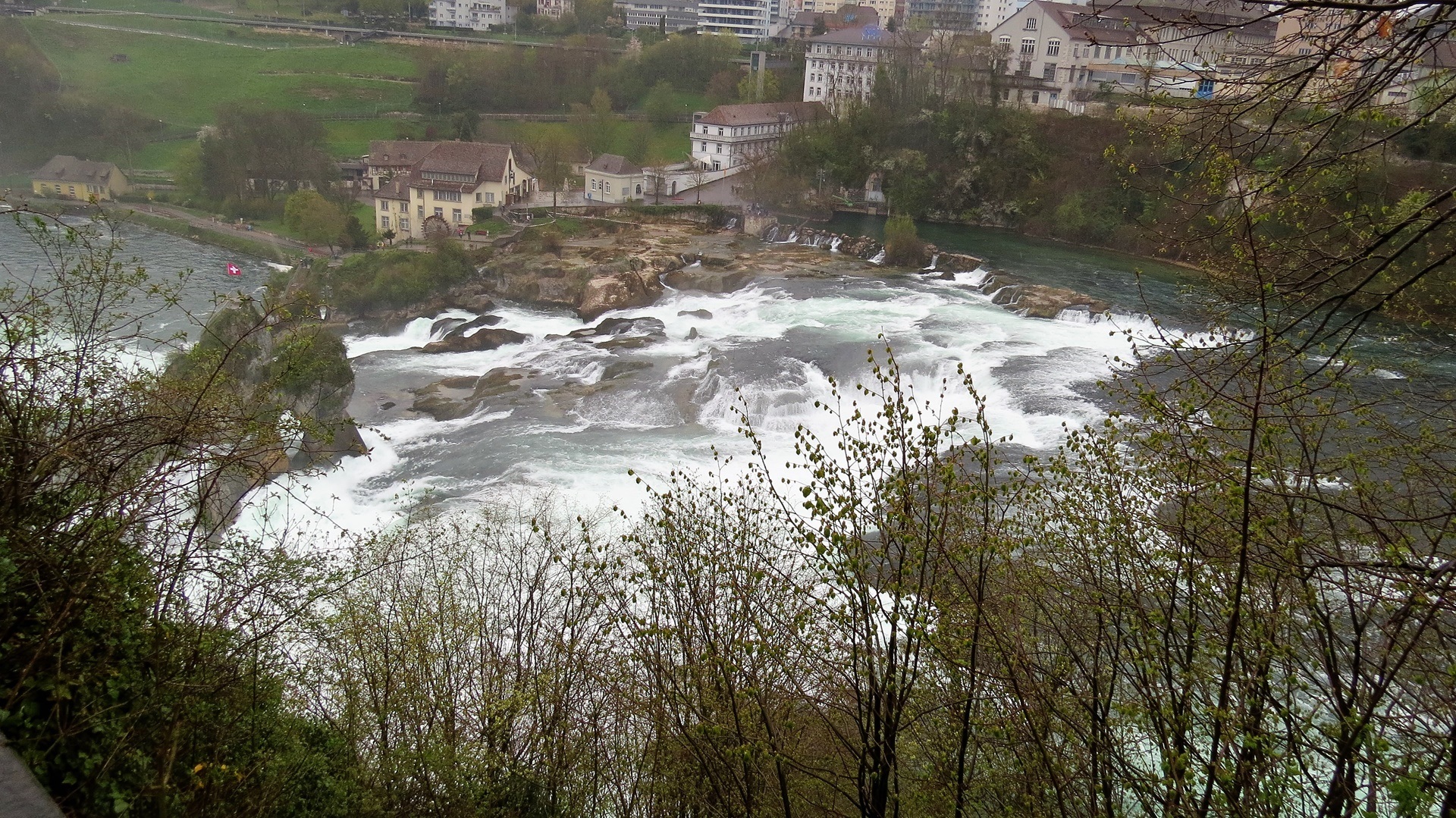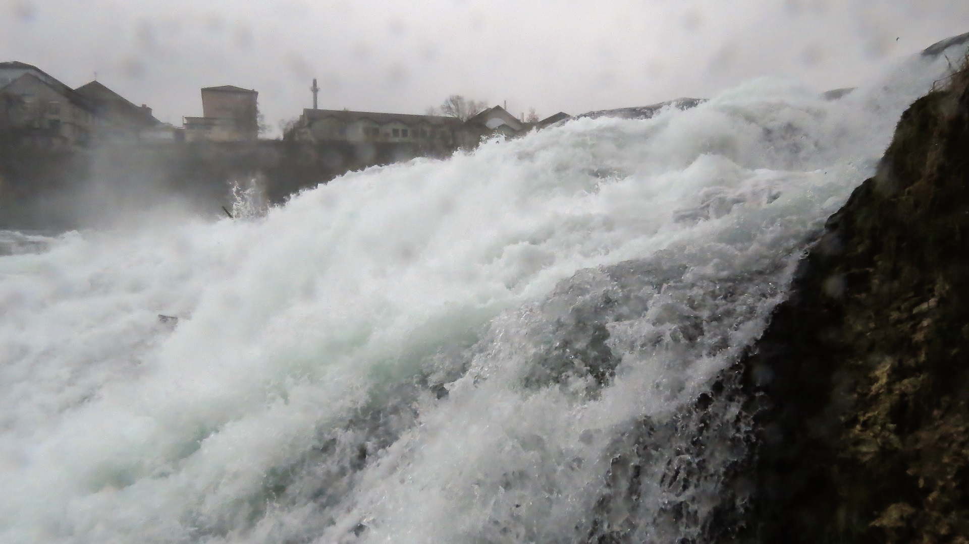 Morgens Rheinfall "bei Schaffhausen", eigentlich bei Laufen. Besichtigung von der Südseite über Schloss Laufen. Gut angelegte Treppen zu den Wassermassen des Rheinfalls (23 m tief, 150 m breit), sehenswert. Die beiden größeren Wasserfälle in Europa (Norwegen, Island) fehlen uns noch. Schneefall in der Schweiz, 17 km Gotthard-Tunnel - die Tremola war noch geschlossen -, Regen im Tessin und in Italien. V&E in Bellinzona für lau. Der Wechselrichter zum Laden der Fahrradakkus ging nicht. Aber OBI bei Como hatte sogar am Sonntag ein Modell mit doppelter Leistung und 20% Skonto ("espositione") für uns, er lässt sich aber nur direkt an der Batterie betreiben. Wegen des schlechten Wetters durchgerauscht bis kurz vor Parma.