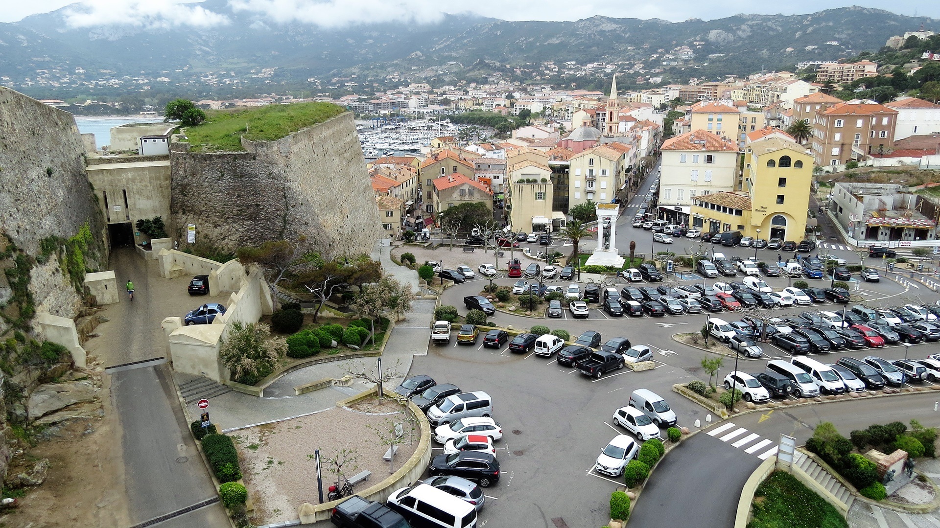 Regen. In einer Regenpause mit den Rädern vier Kilometer nach Calvi zur Zitadelle, schön in derselben auf Rundgang gestakt und uns in der Unterstadt am Hafen zur Planche corse und Moules et frites draußen niedergelassen. Recht starker Regen hielt uns schließlich nicht ab, zum Platz zurückzuradeln. Durchnässt, Mittagsschläfchen, Kuchenbacken im Omnia, Backgammon spielen.