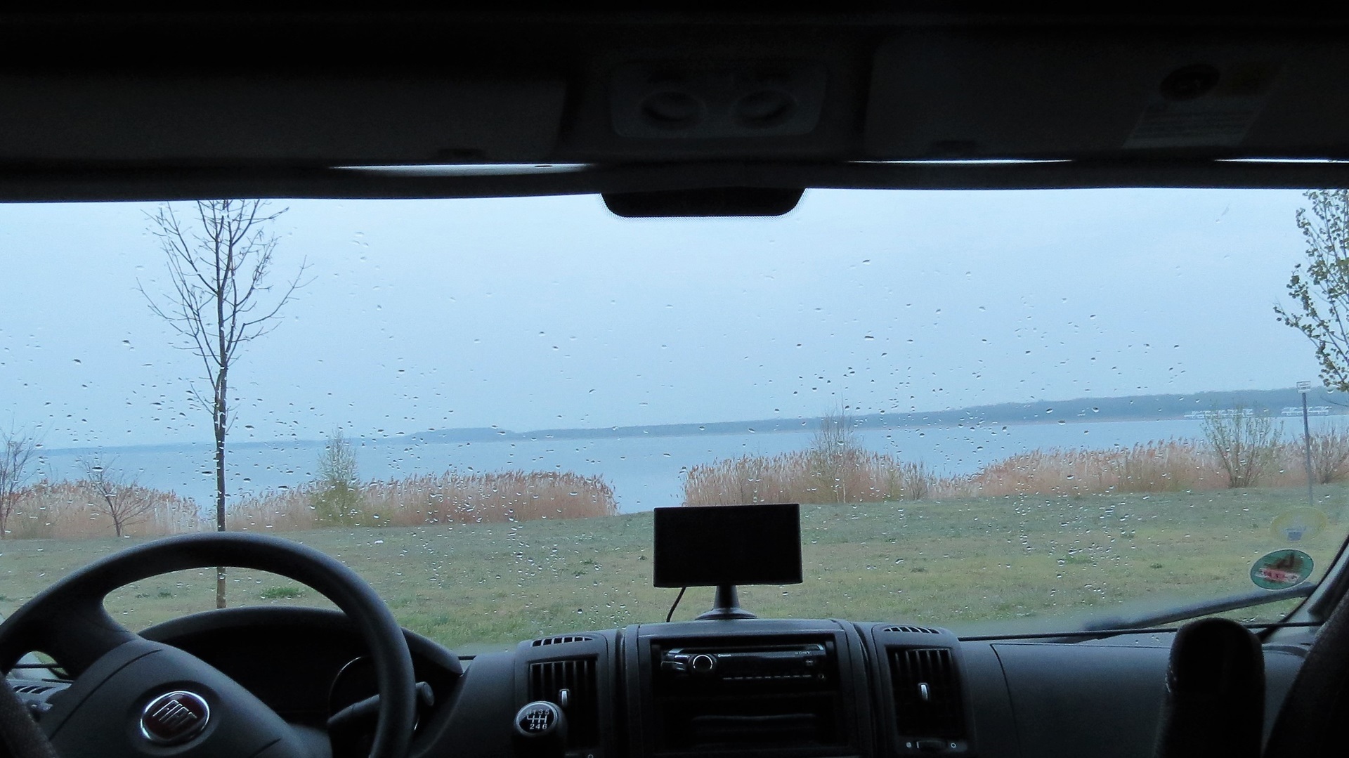 Nach der Arbeit um 19 Uhr aufgebrochen bis zum Tagebausee "Großer Goitschesee". Stellplatz am Wasser.