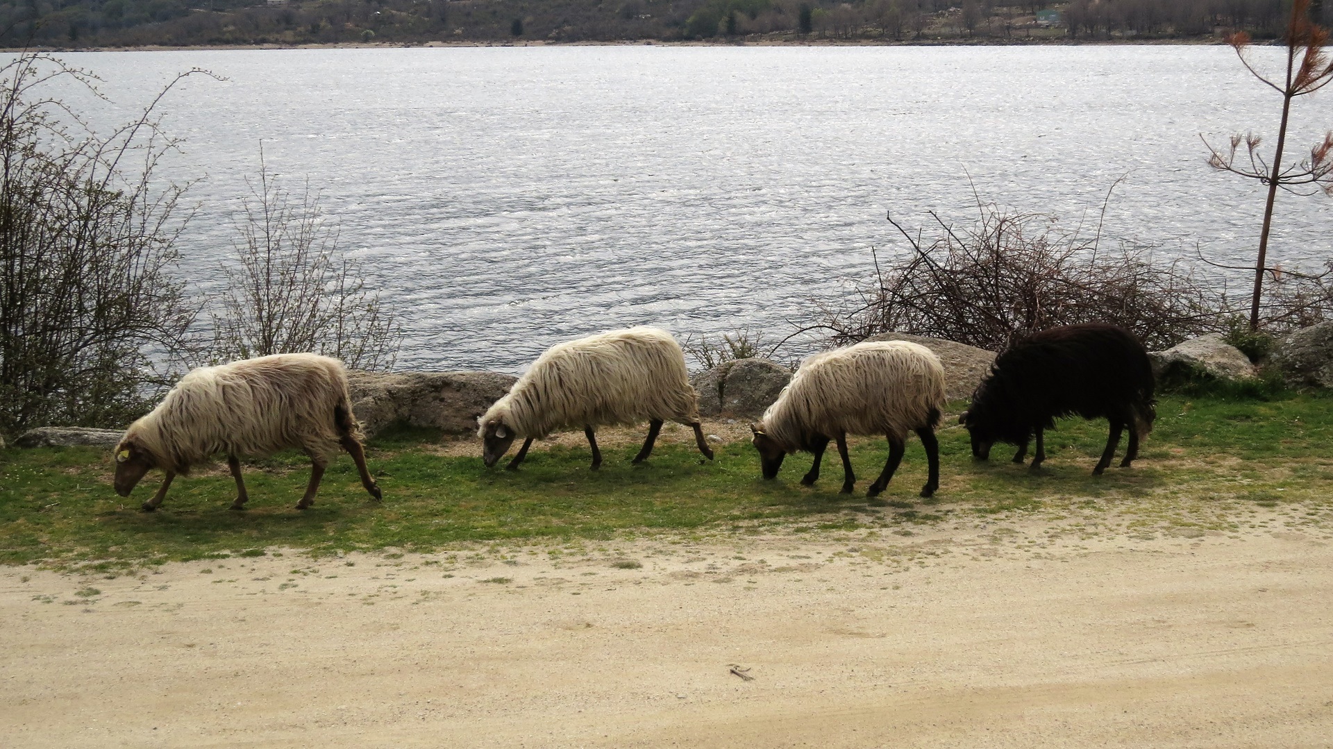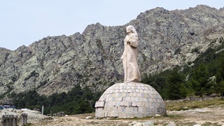 Osterfrühstück mit Matsch-Ei und Colomba-Kuchen (Colomba = Taube). Zum Abschied am Stausee Schafherde nach Art der Mufflons. Hinauf auf 1.475 m zum Col de Verghio mit Jesus-Statue. Höchster Punkt unseres Korsika-Aufenthalts. Durch die Gorge de Spelunca (irrwitzige Straßenanlage, kahle rötliche Felsen) bis Porto. Weiterfahrt Richtung Piana wegen eines schweren Radrenn-Unfalls nicht möglich, zunächst in Marina di Porto mit zwei gewaltigen Eisbechern mit Blick in die Porto-Bucht vertröstet, dann neu entschieden Richtung Calvi bis zum Plage de Bussaglia. Freier Womo-Stellplatz 139 mit letztlich 8 Womos und wunderschönem Kiesstrand.