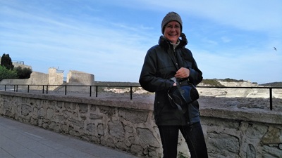 Rennradtour 21 km mit 21 km/h "mit Meerblick" als Einstieg in den Tag. Sonnenbad am Strand, ganz, ganz schön mit leise plätscherndem Meer und leichter Brise. M jedoch mit allergischer Reaktion auf die Sonne wegen Ohrenweh-Antibiotikums. Dann nach Bonifacio - 1. Campingplatz! Fußläufig in die Stadt, V&E, muss auch mal sein. Durch die Unterstadt (Restaurant-Rennstrecke am Hafen) hinauf in die Oberstadt über langgestreckte Stufen. Schöne Ausblicke, Einheimischen beim Boule (oder Petanque?) zugeschaut, durch die Altstadt, leckerst korsisch gegessen: Aubergine á la bonifacienne, Kabeljau auf Reiskuchen, Crème brûlée und Pietra ambrée) - ein runder Tag! Und noch Ohrringe aus Koralle mit 925er Silber für M. Später ist uns dann noch die Mobilade "abgestürzt", muss wohl doch angeschraubt werden.