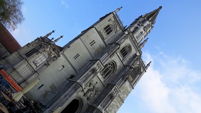 Schneetreiben im Thüringer Wald, Sonne in Bayern, Regen auf der Schwäbischen Alb, Sonne, aber kalter Wind am Untersee/Bodensee. Fahrräder ausgepackt und in die Altstadt gefahren, dabei eine Trelock-Kette verloren, aber der Fahrradladen in Konstanz hatte eine neue für uns. Schwäbisch gegessen mit Spätzle.
