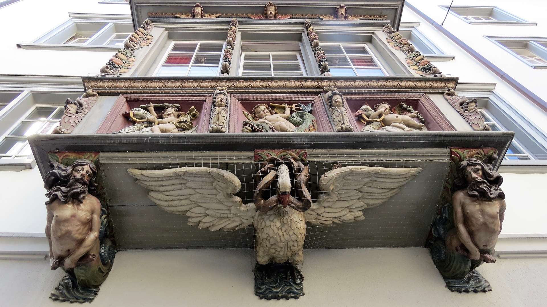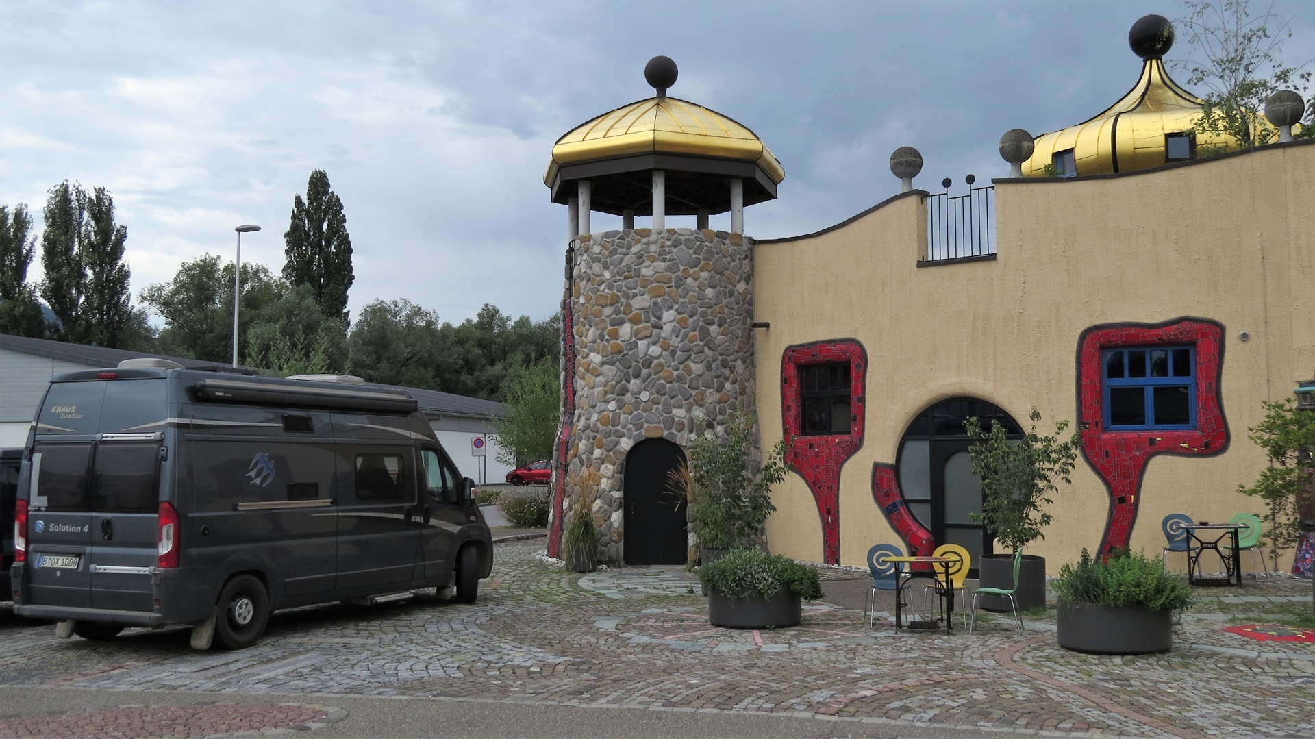 Schöne Fahrt durch die Schweizer Alpen mit San-Bernardino-Tunnel (6,6 km) bis St. Gallen. Schwarzweiße Salatgarnitur fürs Womo erstanden. Schöner Ort, prächtige Erker, schöne Stiftskirche, irre Preise. Park4night-Platz direkt am Bodensee. M schwimmen im See (jedoch "nicht gestattet"). Abends spektakuläre Gewitter auf der deutschen Seite: See türkis, Berge blau, Himmel blau oder blitzerleuchtet. M 3x Bonus im Scrabble!