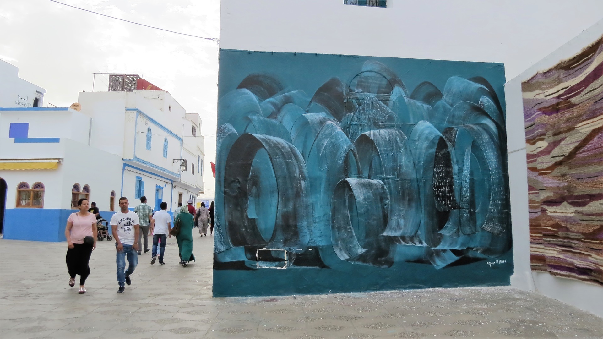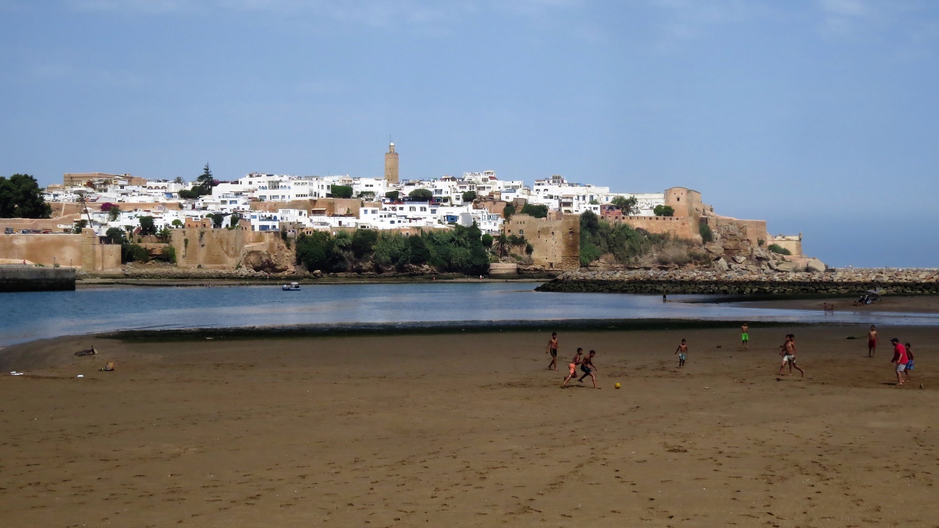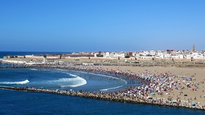 Eine Suche nach einem idyllischen Platz an der Küste im Juli/August: das geht nicht. Also neuer Plan: ein Riad in Rabat, am Abend vorher schon gebucht. Kurze Fahrt auf der Autobahn, Glück gehabt mit Gratis-Parkplatz direkt um die Ecken am Straßenrand. Riad schön und direkt vor den Toren der Medina. Am frühen Nachmittag in die Kasbah des Oudayas und durch die unaufdringliche Medina spaziert. Restaurants abends schwierig, hat alles nicht so funktioniert. Deshalb lustig Pizza-Essen an der belebten Uferpromenade des Oued Begregreg mit Blick auf die Ruderboote nach Salé. Dann noch Bier auf Dachterrasse.