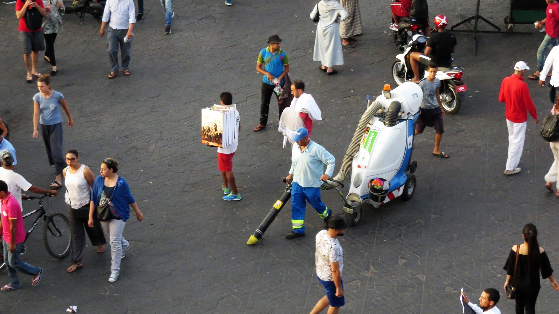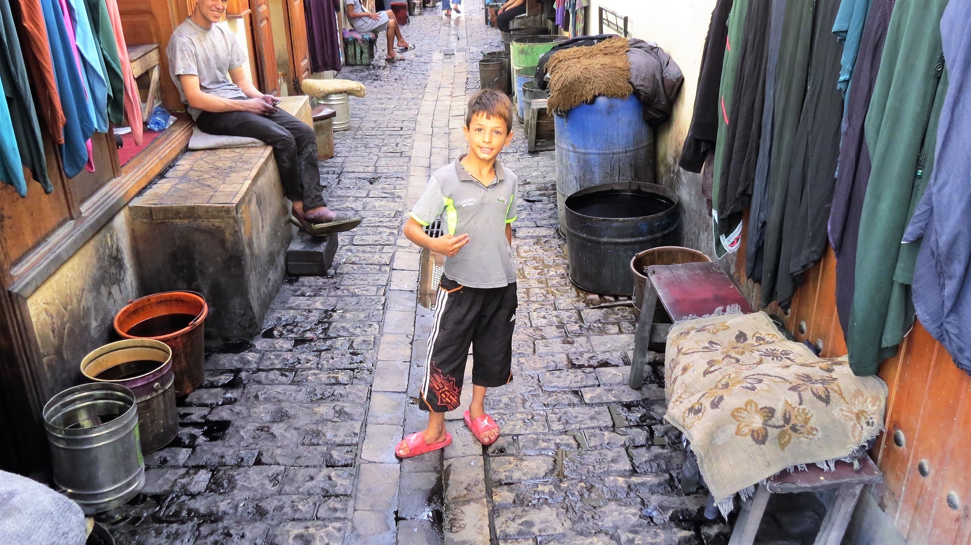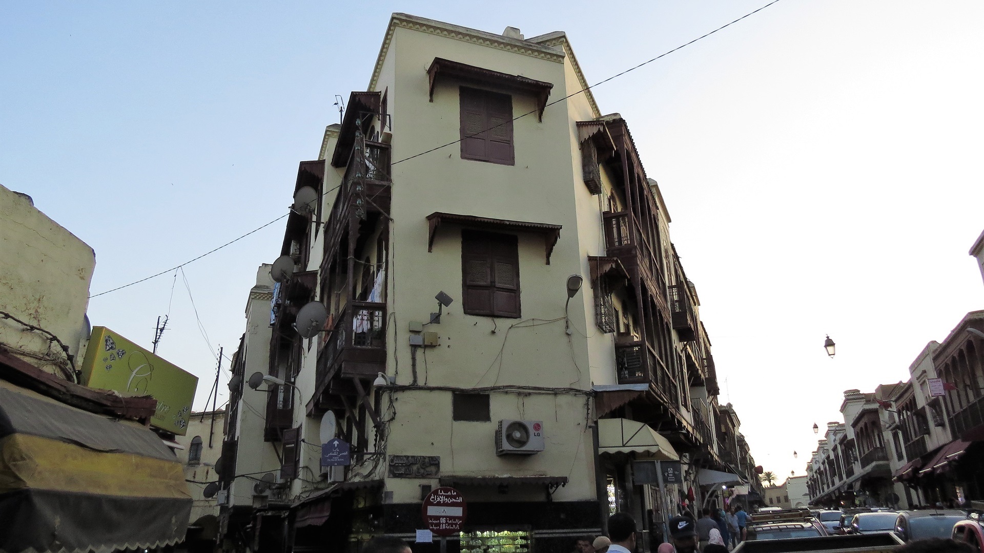 Vormittags Reiseroute veröffentlicht, Maniküre. Nachmittags zum Bab R'cif. Färberviertel mit Hosenbeine hochkrempeln (!), Place Serrafine (Platz der Kupferschmiede), einmal um die große Moschee herum mit Einblicken durch geöffnete Türen. Dann ins Gerberviertel. Von einem Guide zu einer Terrasse der Lederwarenhändler leiten lassen. Dort führte uns der Händler auf seine Terrasse und wir konnten von oben die Gerbereien sehen. Sachkundige Erklärungen auf Deutsch, viele Fotos, Trinkgeld. Anschließend mit dem Taxi Richtung jüngerer Altstadt Fès Djdid ("Neu-Fès") zum Café Mezzanine. Bier (!) und marokkanische Tapas auf der Dachterrasse, viele junge Frauen, meist ohne Kopftuch. Weiter durchs jüdische Viertel Mellah hinaus aus der Altstadt, mit dem Taxi zurück. Marokkanischen Wein durch die VW-Camper besorgen lassen, wir konnten im Riesen-Carrefour nicht parken.