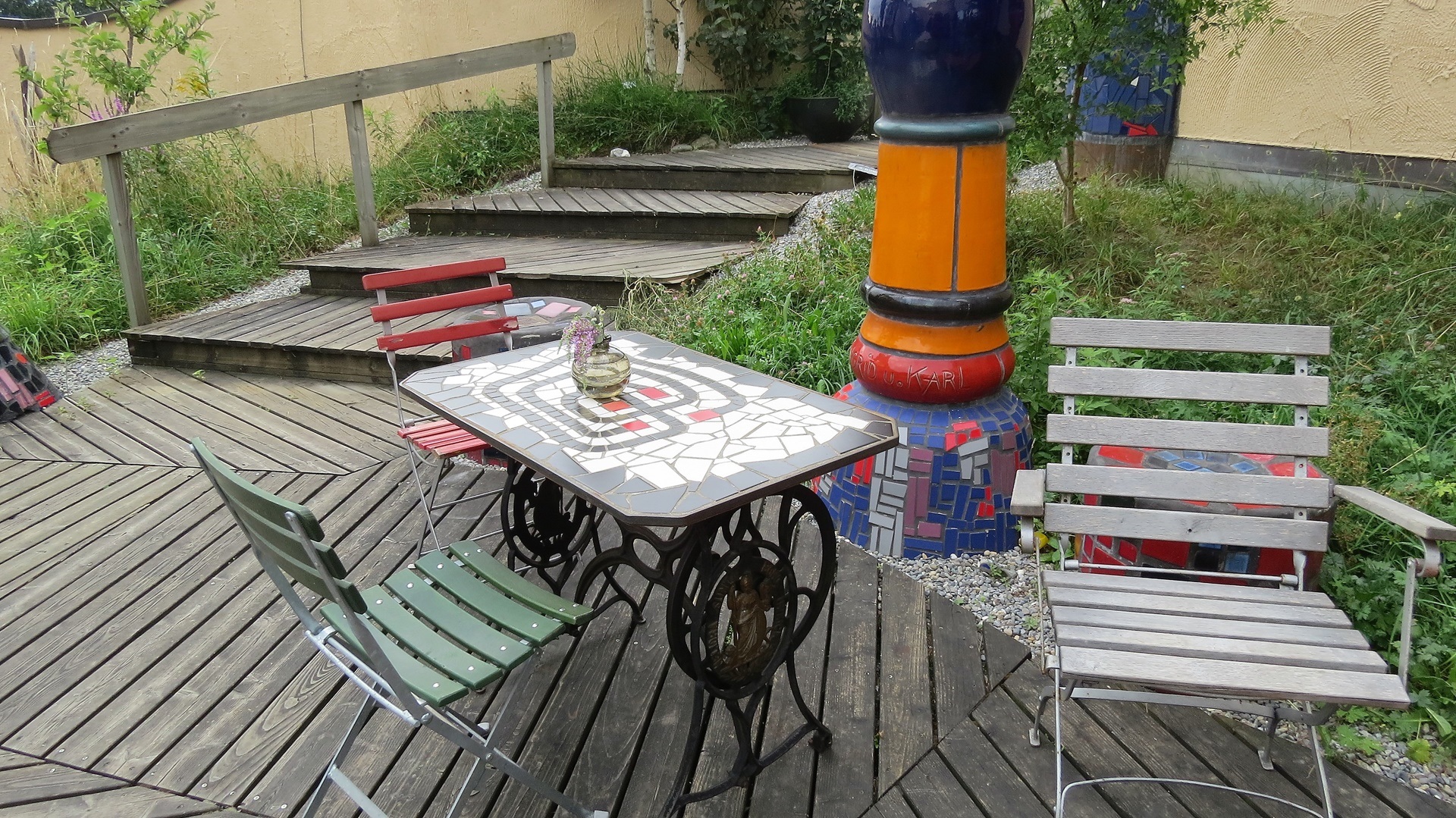 M morgens im See. Nach dem Frühstück im Hundertwasser-Haus in Staad vorbei und glatt durch bis Bayreuth zum Mittagessen. Fränkische Spezialitäten (nach Wochen wieder Schwein!) geschmaust, evangelische Domkirche und Altstadt angesehen, dann wieder glatt weiter bis nach Hause.