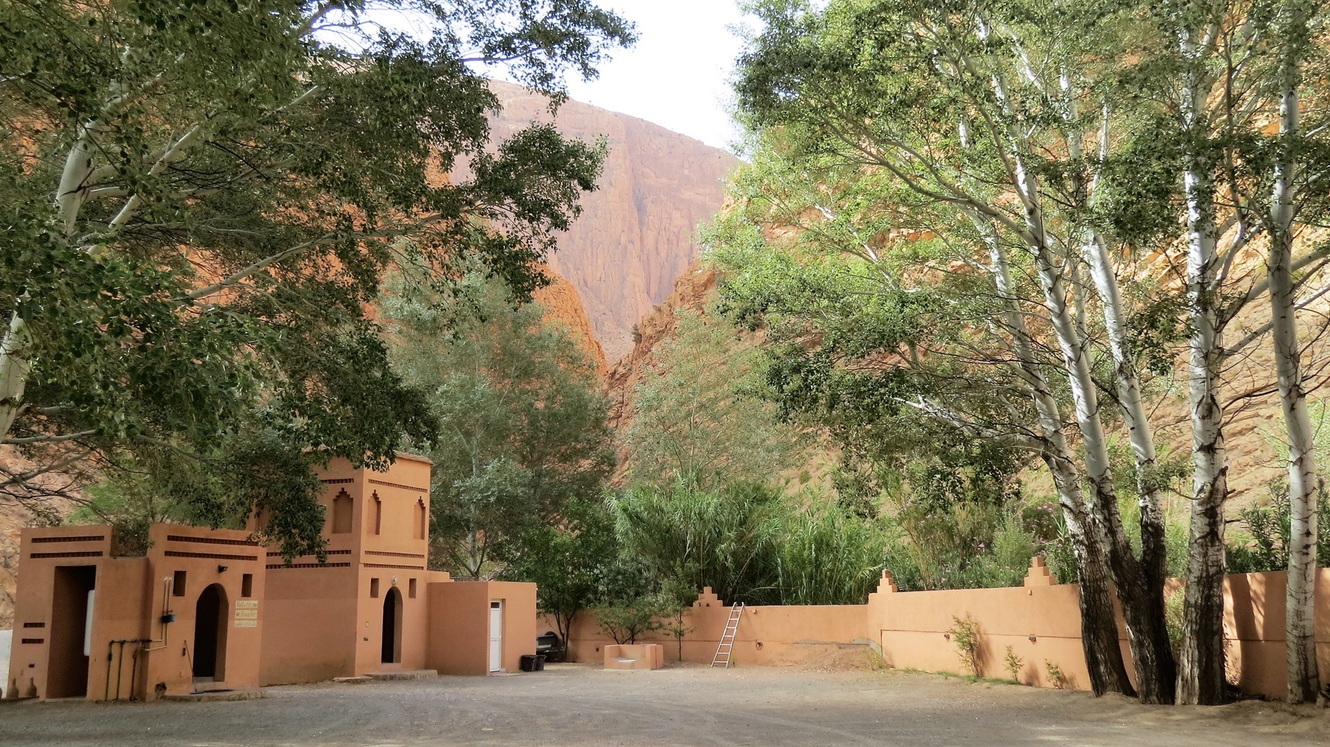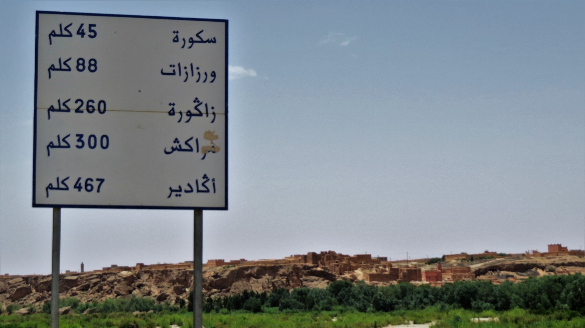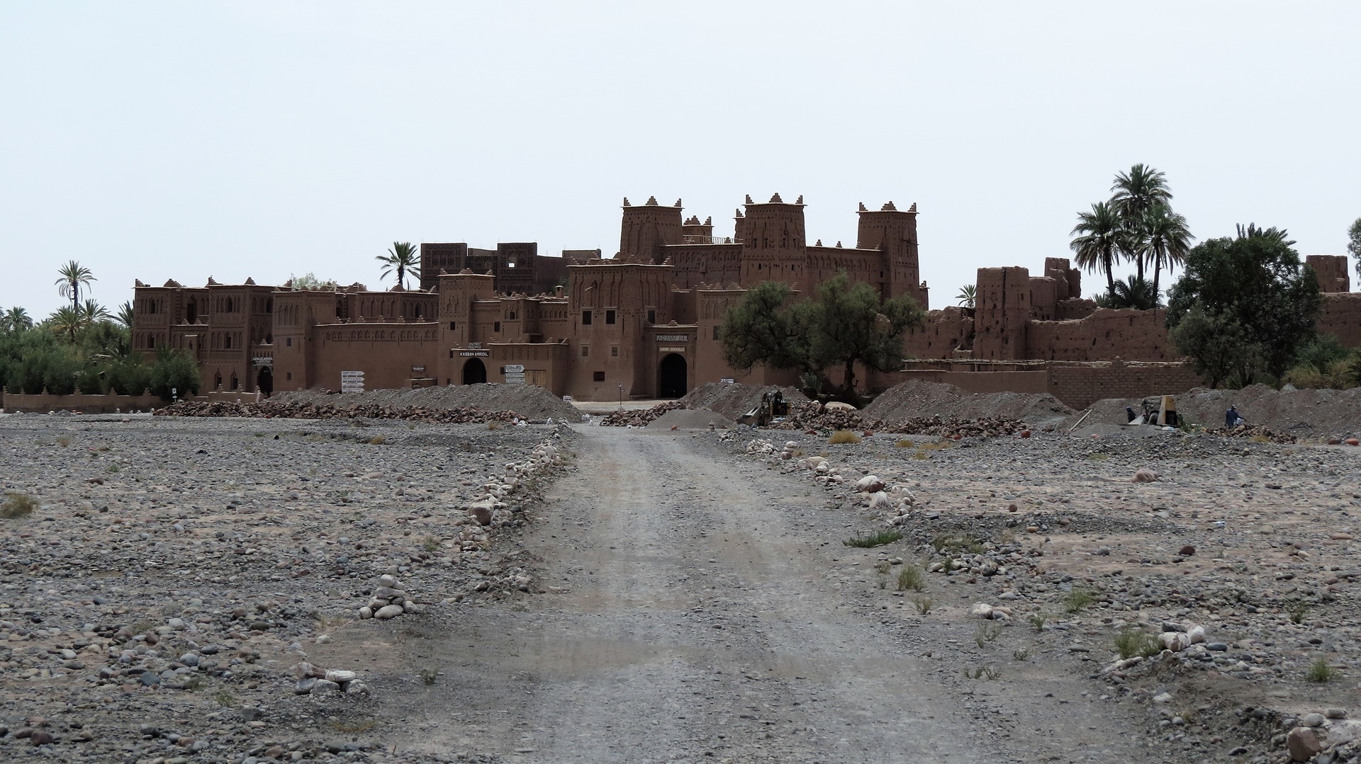 Zurück zur Straße der Kasbahs. Jetzt viele Kasbahs. In Kelâat des M'gouna Tajine am Straßenrand gegessen und, weil Einfahrt zur Rosenschlucht, Rosen-Produkte gekauft. In Skoura die Kasbah Amridil besichtigt. Aus der Ferne noch den Turm des riesigen Solarkraftwerks gesehen. In Ouarzazate mit marokkanischem Bier eingedeckt. Abzweig nach Ait Ben Haddou genommen, schöner Campingstellplatz direkt am Pool!