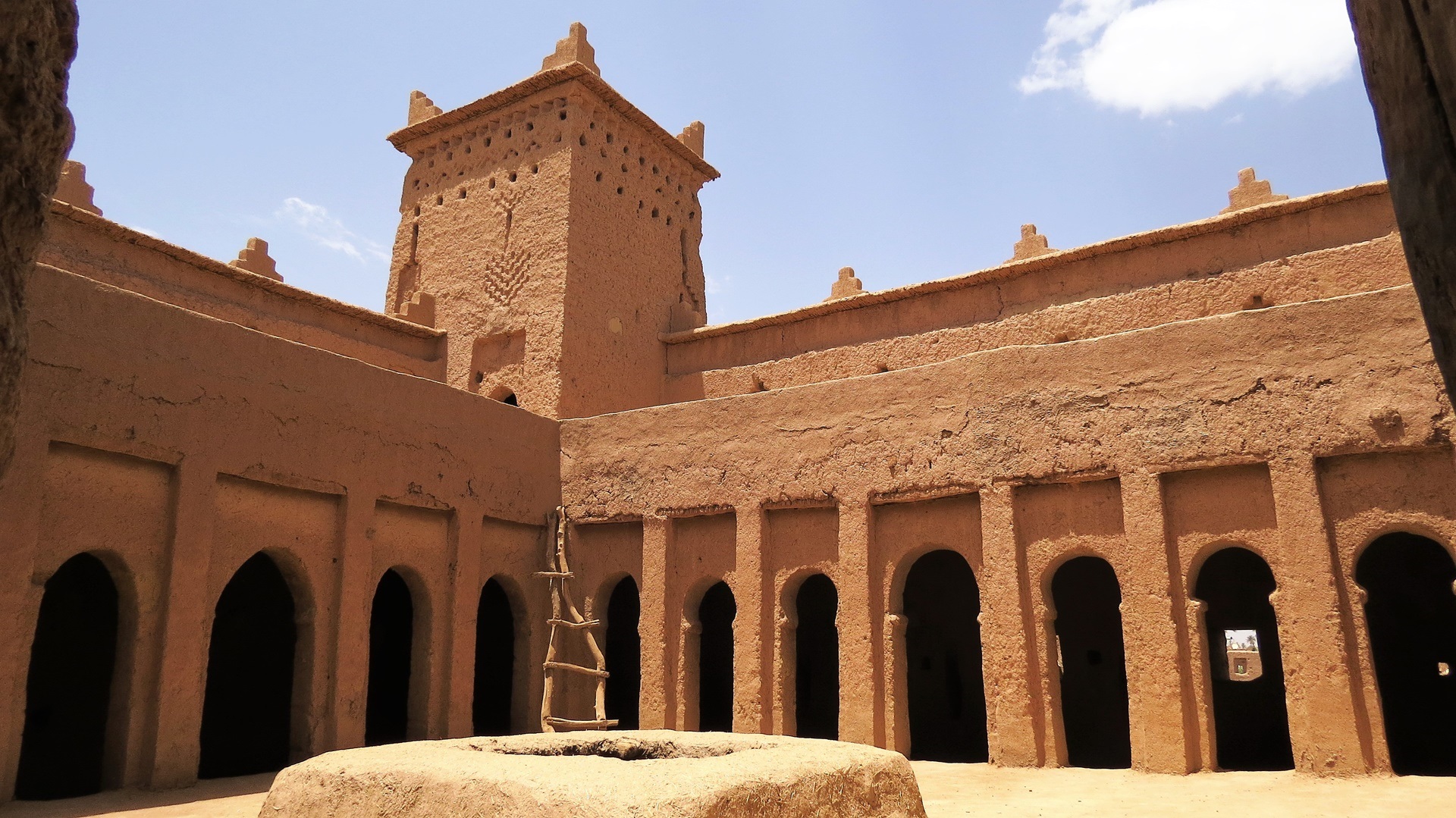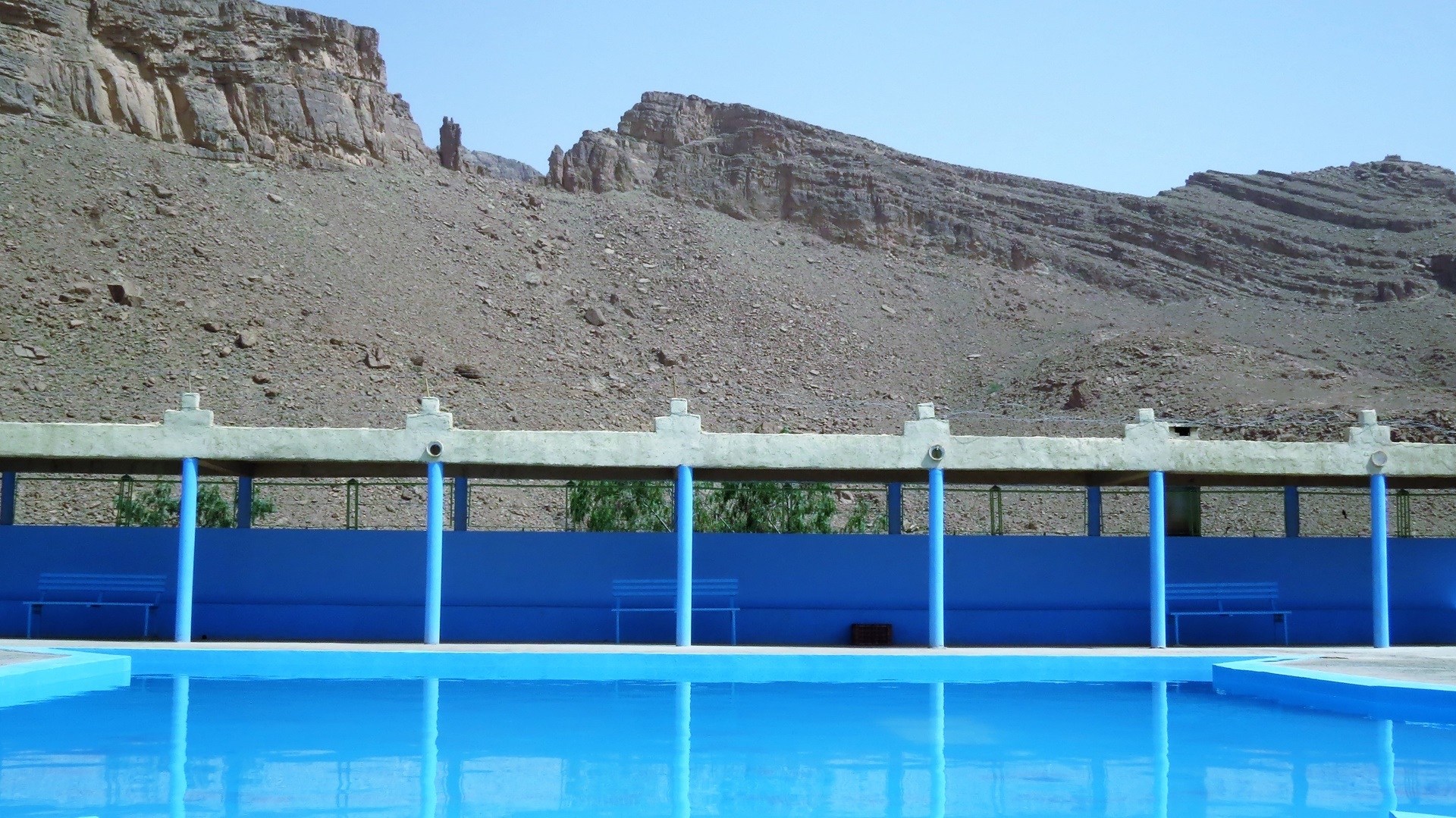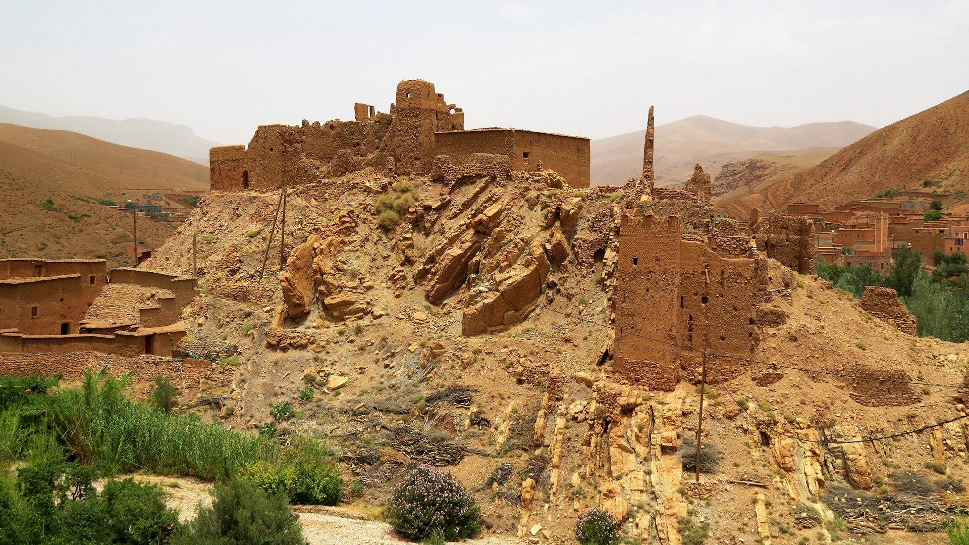 Zurück zur Straße der Kasbahs. Jetzt viele Kasbahs. In Kelâat des M'gouna Tajine am Straßenrand gegessen und, weil Einfahrt zur Rosenschlucht, Rosen-Produkte gekauft. In Skoura die Kasbah Amridil besichtigt. Aus der Ferne noch den Turm des riesigen Solarkraftwerks gesehen. In Ouarzazate mit marokkanischem Bier eingedeckt. Abzweig nach Ait Ben Haddou genommen, schöner Campingstellplatz direkt am Pool!