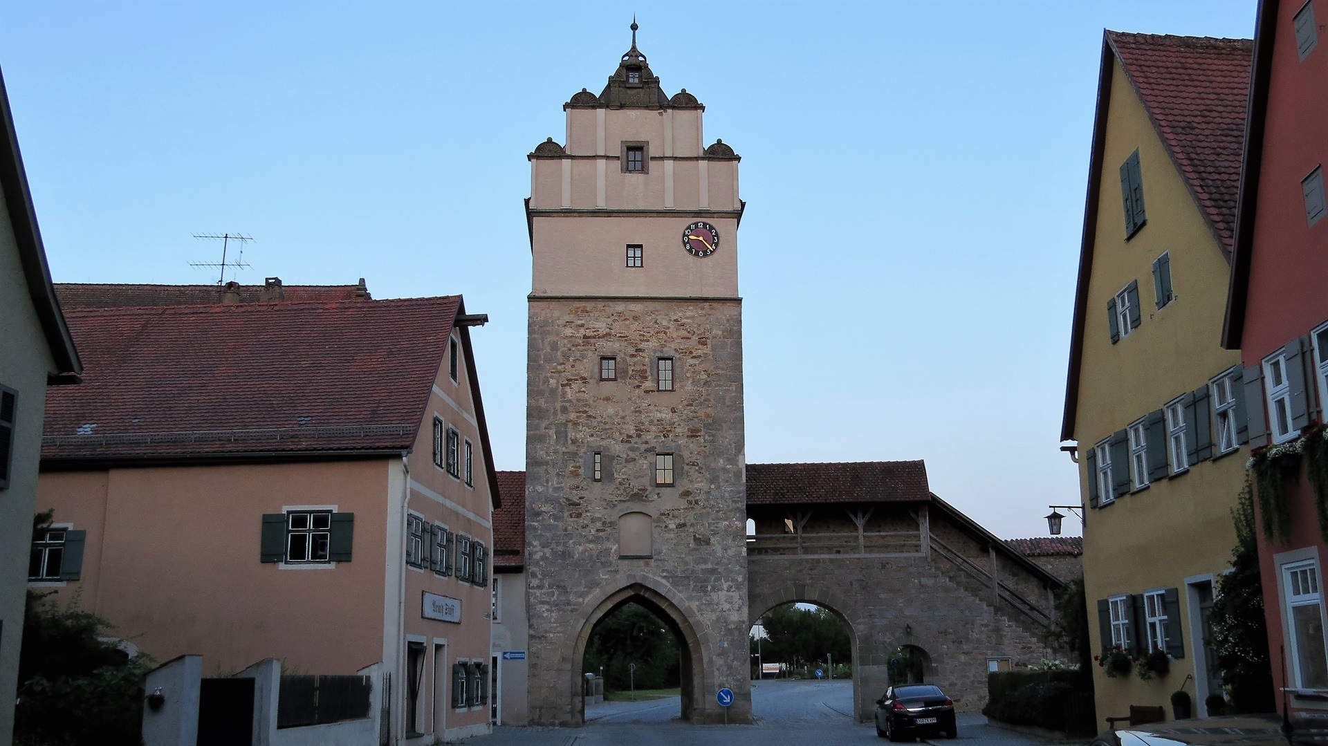 Vormittags gepackt, 15 Uhr Abreise, zuvor in Gosen umgekehrt, um Landkarte mitzunehmen. Stellplatz in Dinkelsbühl, historische Altstadt und Essen in Weib's Brauhaus (eigenes Bier, schwäbische Küche), Bestellung um 21:43, warme Küche bis 21:45 Uhr.