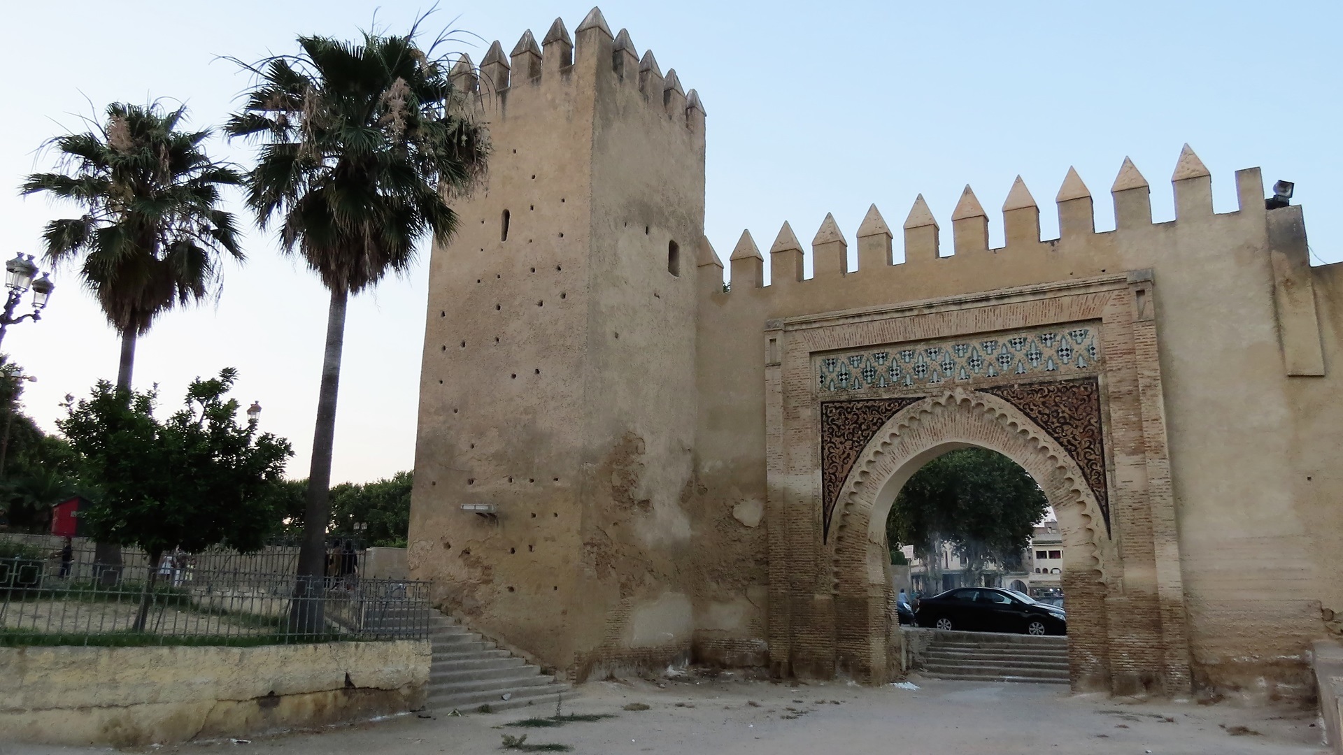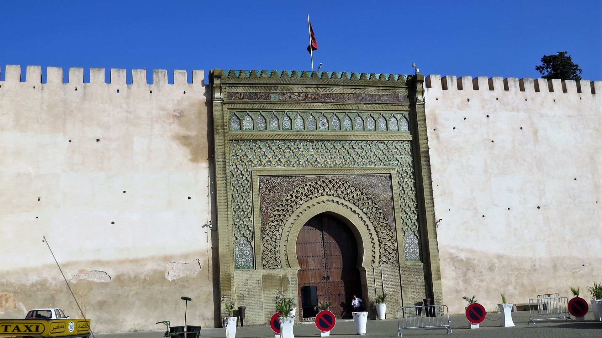 Fahrt durchs Rif-Gebirge bis in die Königsstadt Meknès. Parkplatz über Nacht mit auskunftsfreudigem Parkwächter am "Christengefängnis". Durch die weitgehend geschlossene Medina (Freitag!) geschlendert. Wege durch die Ville Impériale bei der Hitze viel zu weitläufig.
