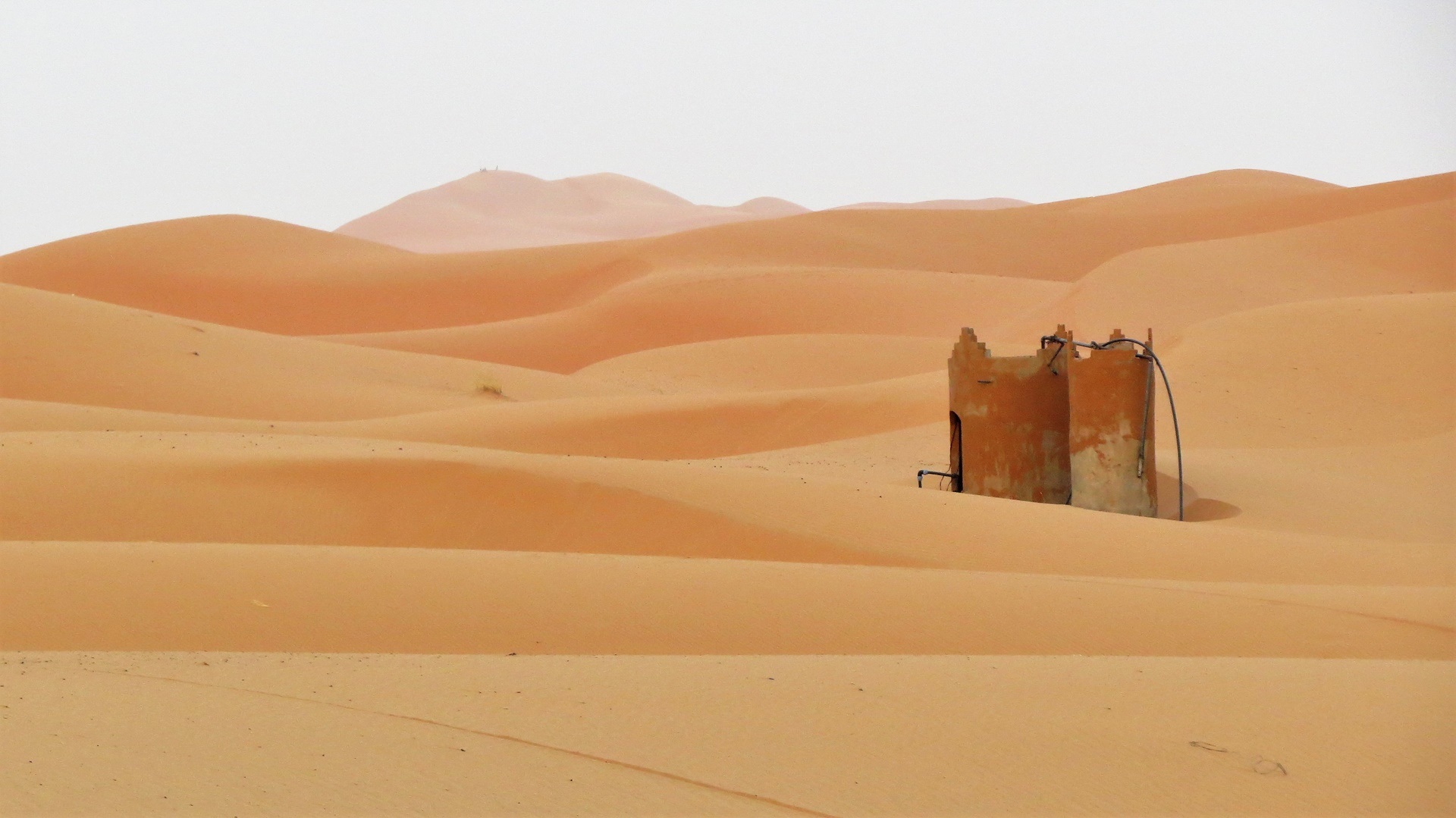 Früh aufgestanden und in die Sanddünen gegangen. Auf einer Sanddüne sitzend den Sonnenaufgang erwartet. Pelziges Tierchen beim Graben eines Lochs in den Wüstensand beobachtet und deshalb von Quad-Tour endgültig Abstand genommen. Zum Frühstücksbüffet, dann wurde es sehr heiß (48 °C). AC, Pool genutzt, gelesen, Route am PC bearbeitet, ausgeruht. Und schon Abendessen.
