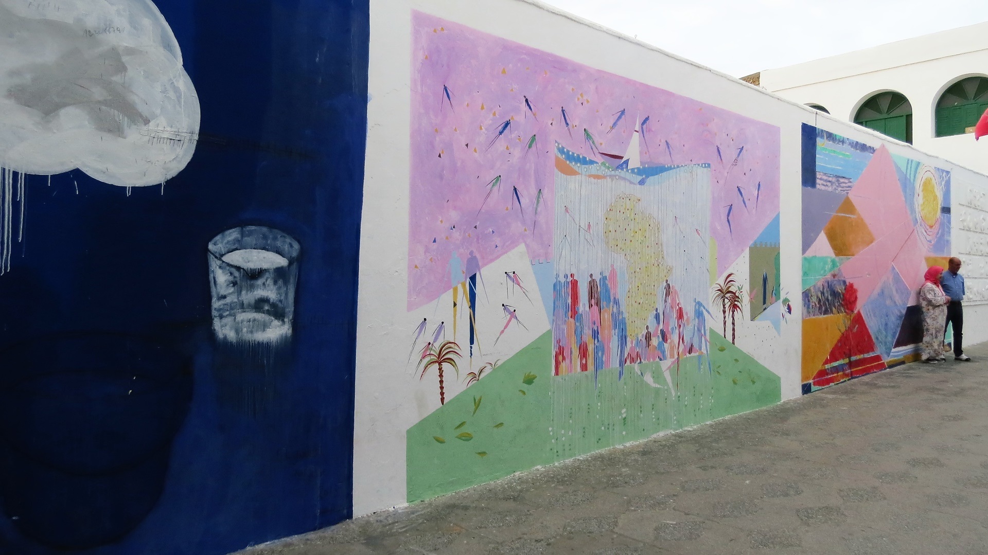 Ankunft 16 Uhr statt 13 Uhr, weitere schöne Stempel auf Kfz.-Papiere erhalten. Großeinkauf in Tétouan bei Marjane. Sensationelle Küstenstraße am Mittelmeer entlang, sehr sauber und beflaggt - fährt etwa der König in seine Residenz am Meer? - bis zum Parkplatz an der Promenade von Oued Laou. Abendspaziergang über den Rummelplatz.