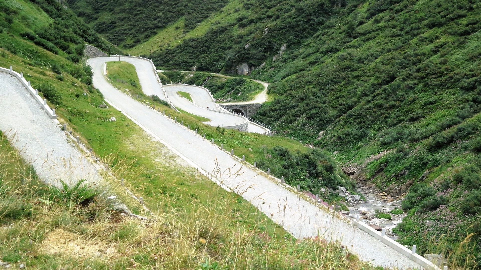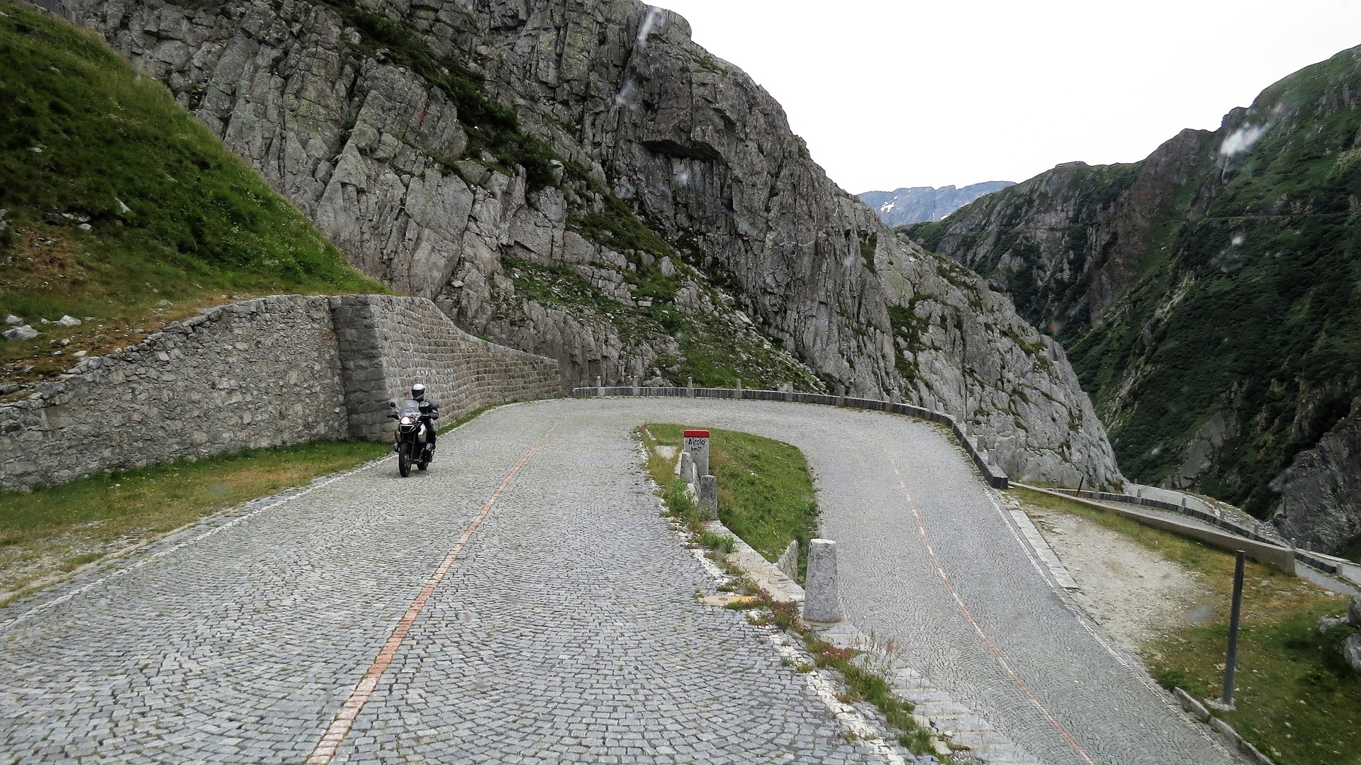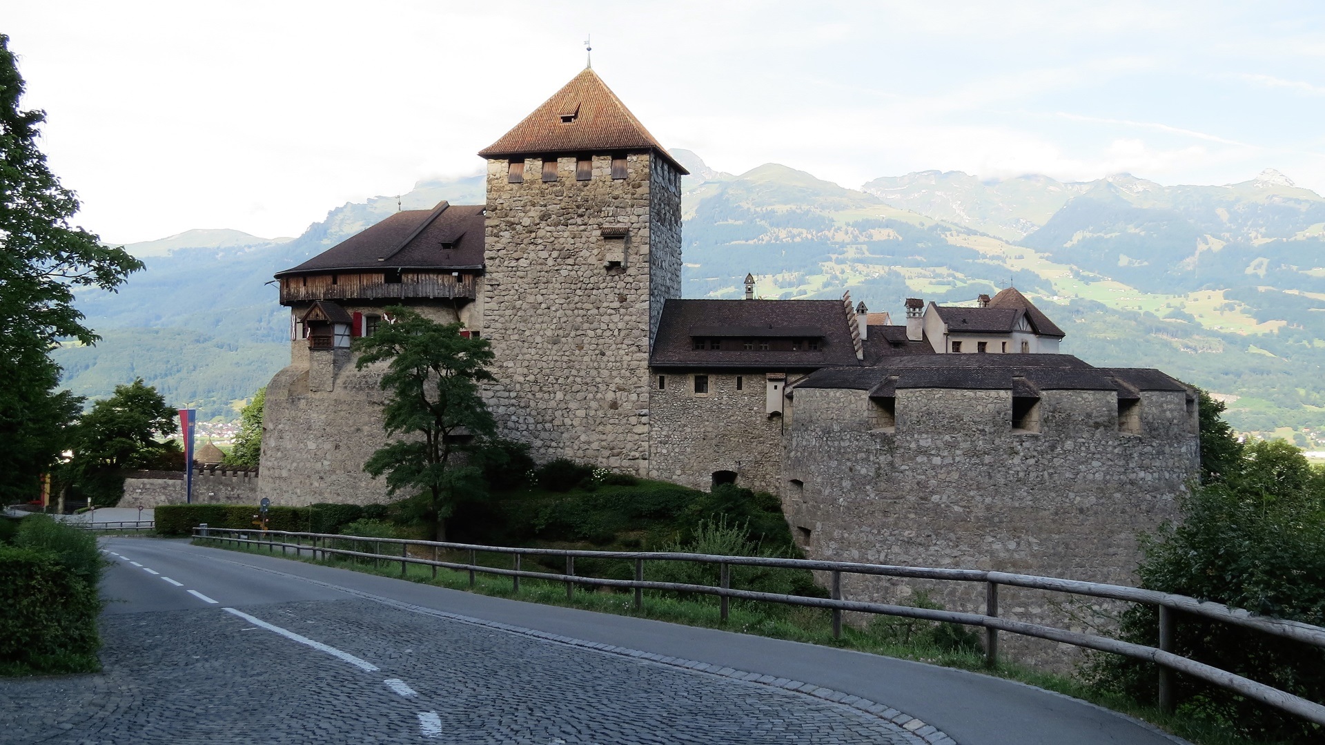In Vaduz Schloss von allen Seiten angesehen, über den Oberalppass (Rheinquellen-Gebiet) in der Schweiz zur Albergo San Gottardo. Passstrecke Tremola bis Airolo im Tessin. Weiterfahrt über Locarno nach Cannobio am Lago Maggiore. Stellplatz Cannobio.