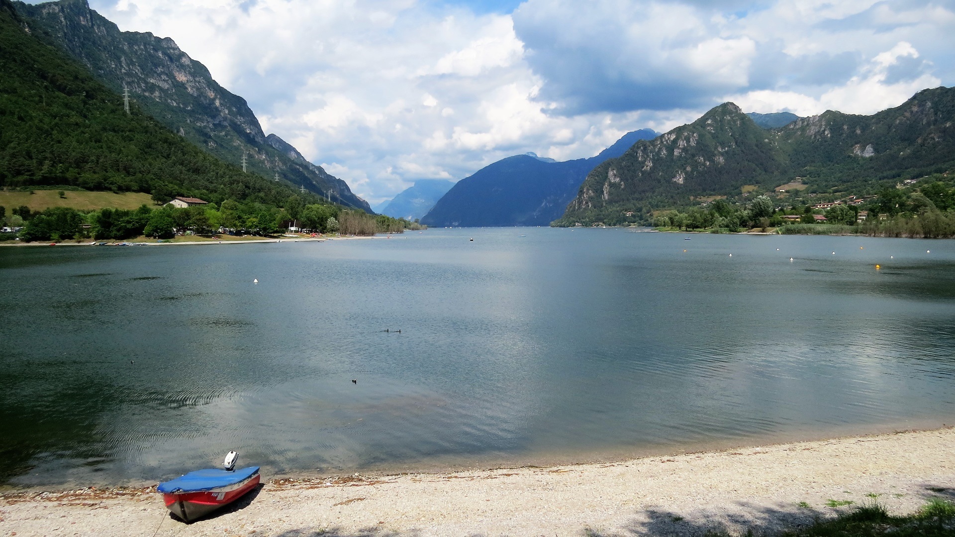 Sirmione überlaufen (Ferienbeginn in Italien immer am 1. August!). Westufer vom Gardasee bis Gargnano. Fünf-Seen-Tour über Lago di Valvestino, Lago d'Idro und Lago di Ledro. Autobahn bis zum Kalterer See. Stellplatz wie schon 2008.