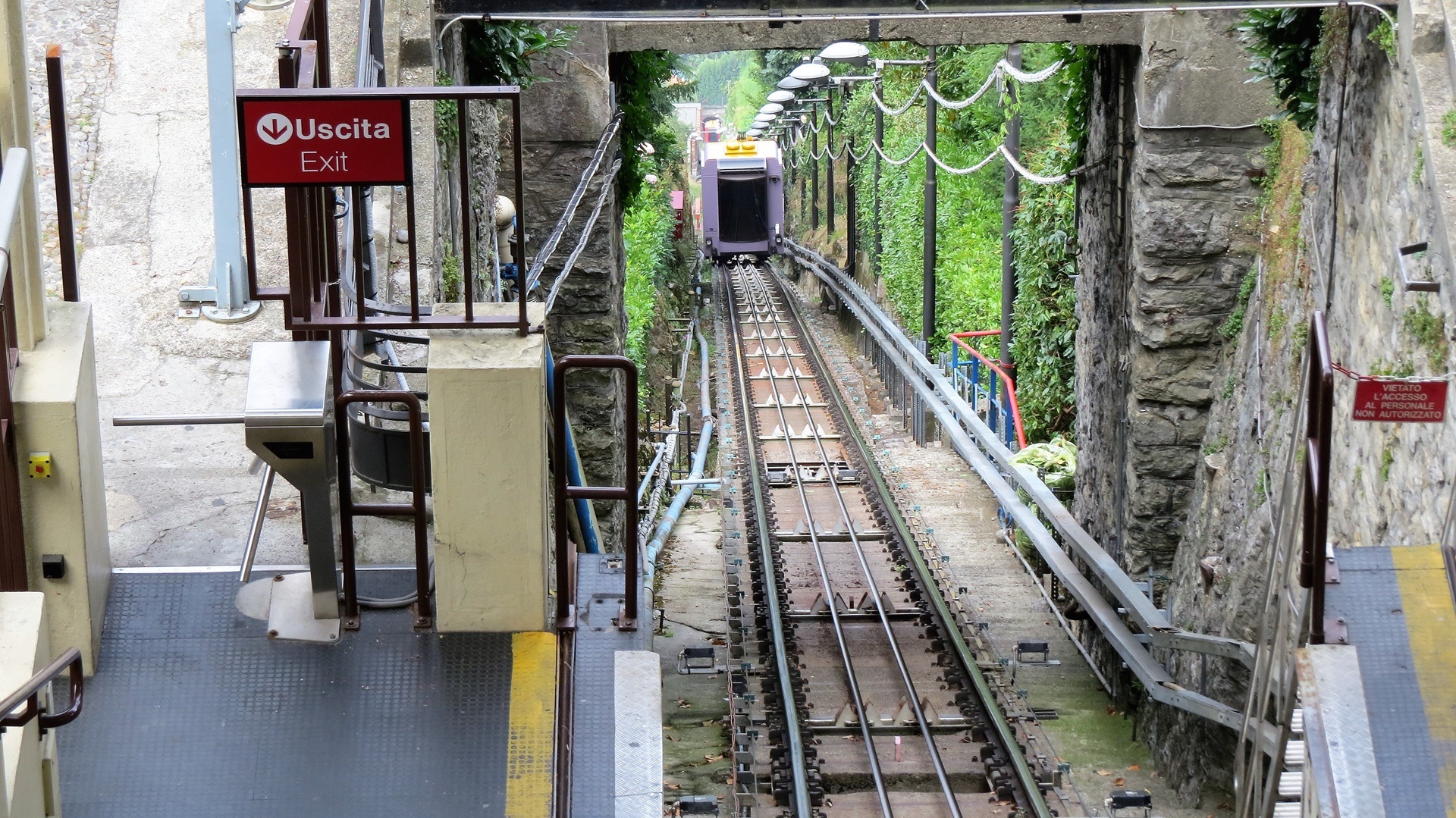 Funicolare Como Brunate mit Aussicht auf Como. Ausstellung in der Villa Olmo direkt neben dem Stellplatz.
