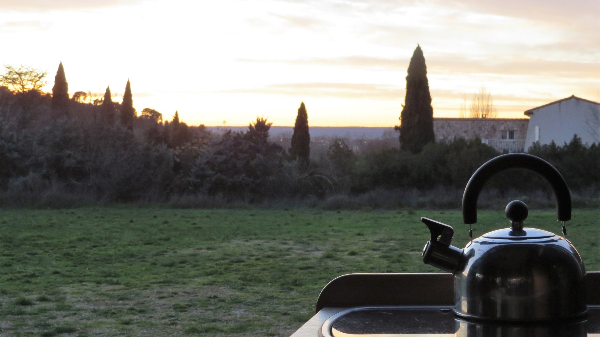 Morgens die Wettersituation analysiert und von einer Weiterfahrt nach Aix oder in die Camargue Abstand genommen, sondern lieber den Sturm mit Böen bis zu 85 km/h auf dem Platz ausgesessen. "Catan - Das Duell" gespielt und rumgeschlafft. M war kaum vor der Tür.