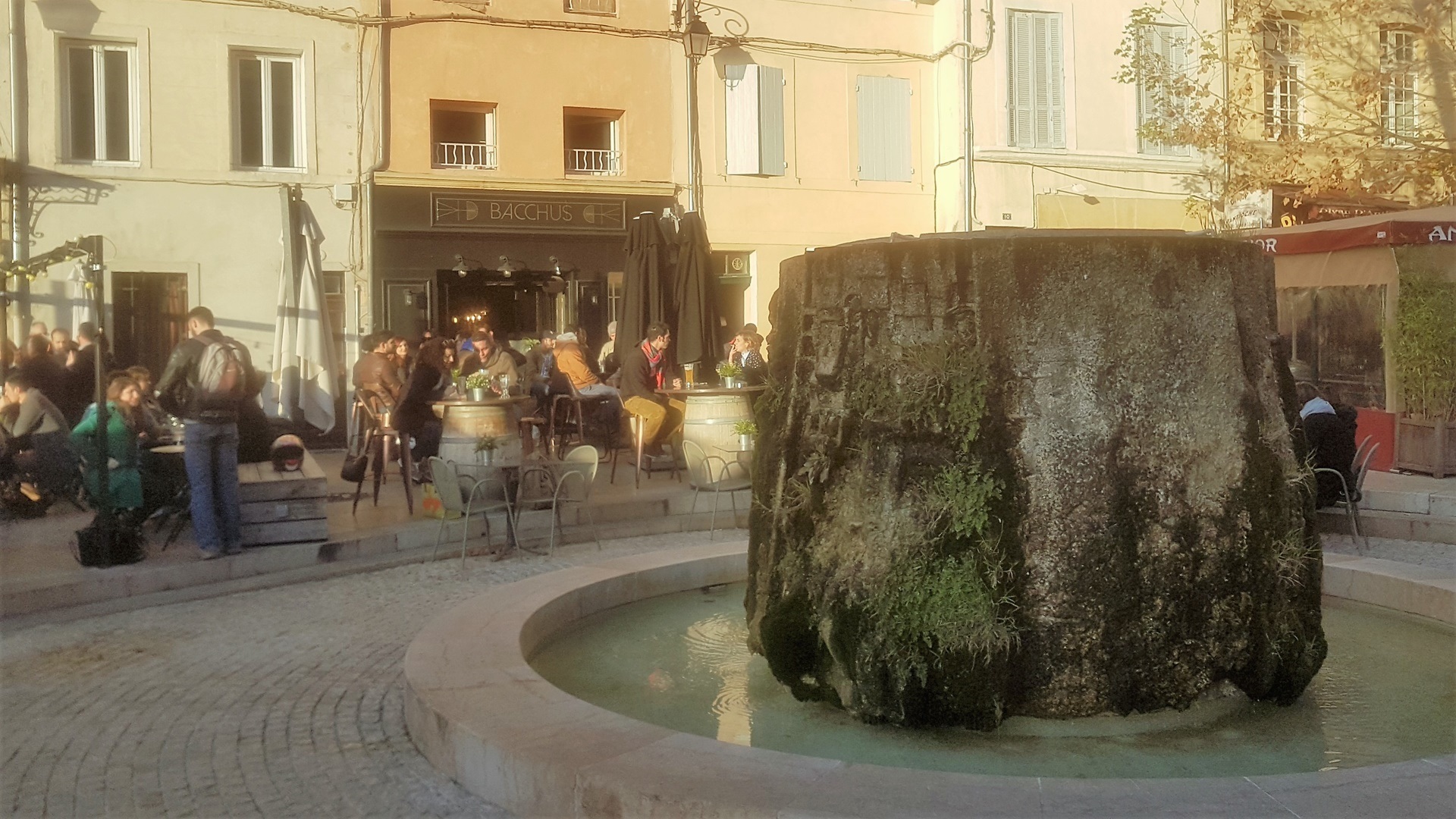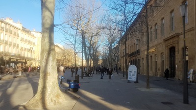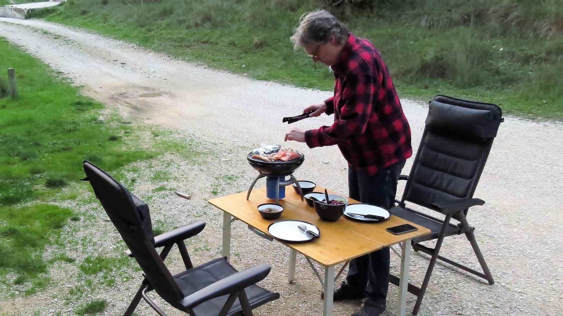 Strenge Blicke durch die Mitarbeiterin der Police Municipale: Wir haben das mit den Stellplatz-Tickets falsch gemacht und standen auch noch falsch herum! Sie half uns aber, das 19-€-Ticket zu umgehen, mussten aber unbedingt raus- und wieder reinfahren, dann wieder für reguläre 4,50 €. Tolle Fahrt entlang der Montagne Ste-Victoire östlich von Aix-en-Provence auf der Route Cézanne. Stellplatz in Aix eigentlich nicht geöffnet wegen einer Familienfehde, aber der Besitzer hat uns dann als Privatgäste (!) empfangen. Ausfahrt in die Stadt mit Rädern zum La-Belle-Iloise-Laden. Dort haben wir uns mit 29 Dosen eingedeckt. Radfahrt durch Aix, Abendsonne aufm Platz.